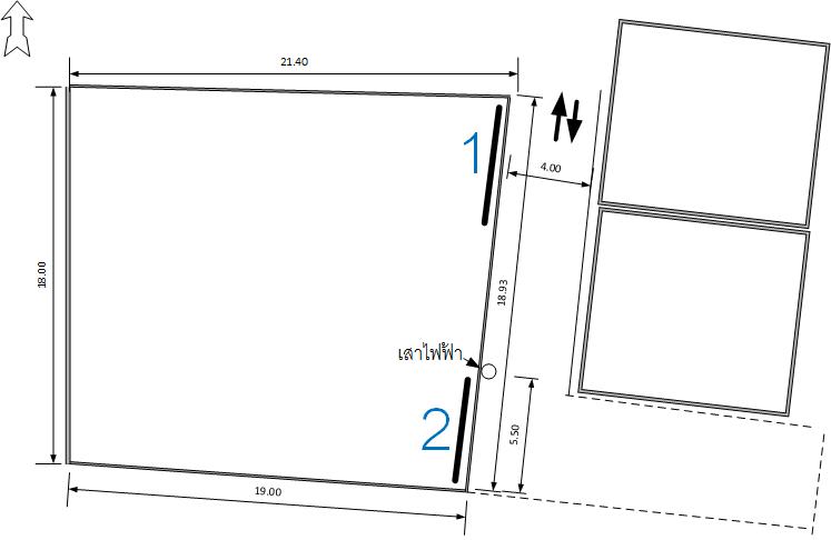 แต่ตำแหน่งที่ 2 ประตูจะกว้างได้แค่ 5.5ม. เพราะติดเสาไฟฟ้า ตำแหน่งของประตูรั้วบ้านจะเป็นตัวกำหนดแบบบ้านอีกทีน่ะครับ ขอบคุณมากครับ