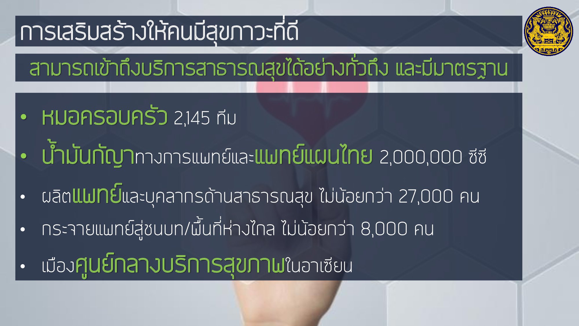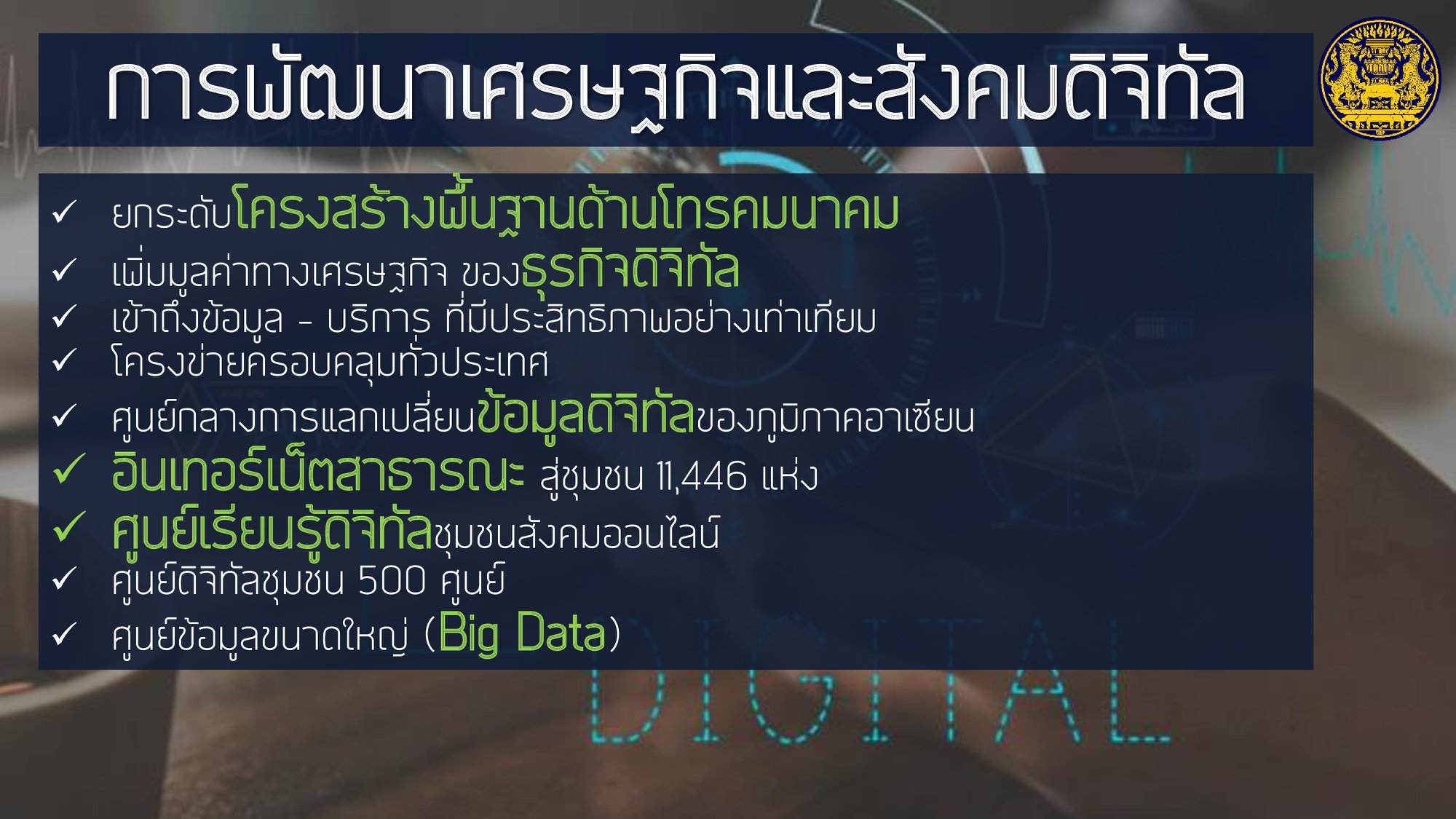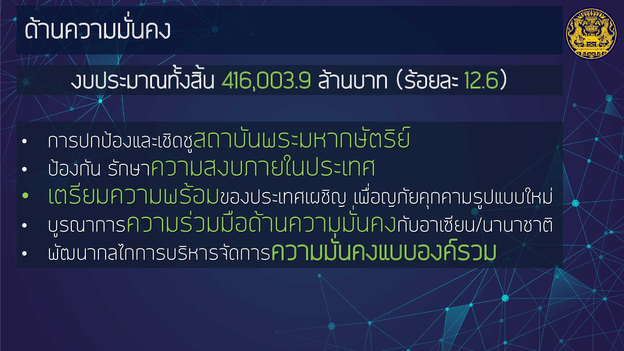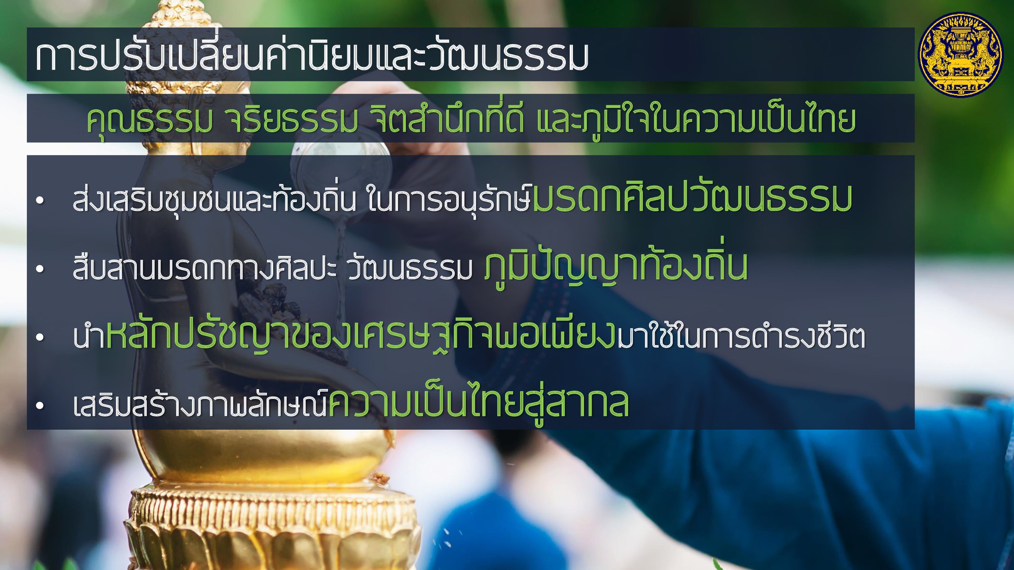 โดยให้ความสำคัญกับการฟื้นฟูเศรษฐกิจ และคุณภาพชีวิตของประชาชนที่ได้รับผลกระทบจากสถานการณ์การระบาดของโรคติดเชื้อไวรัสโคโรนา 2019 ควบคู่ไปกับส่งเสริมการสร้างรายได้ของประชาชนเพื่อกระจายผลประโยชน์ทางเศรษฐกิจอย่างเป็นธรรมและทั่วถึง