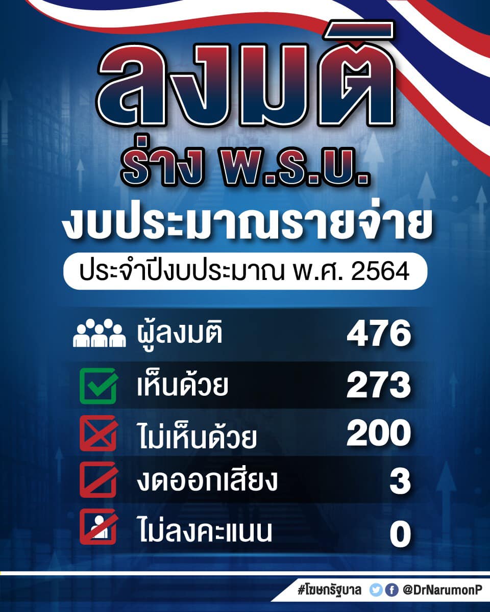 เมื่อคืนได้ดูโหวตผ่านงบประมาณปี 64 คะแนนเห็นด้วยผ่านฉลุย