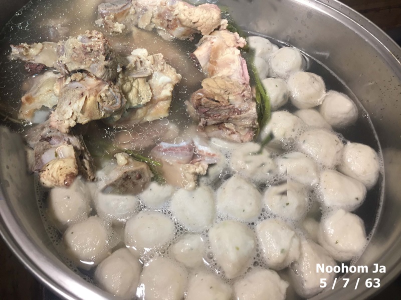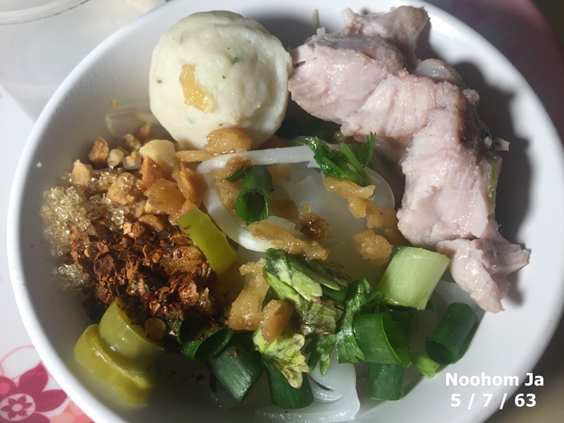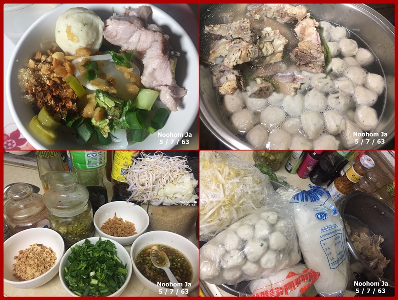 อาทิตย์ที่ 5 กรกฎาคม 2563 ราการบนโต๊ะอาหารวันนี้ ก๋วยเตี๋ยวลูกชิ้นกระดูกหมูเส้นเล็กสดผักงอก รายการทำง่ายกินง่ายแต่อร่อย เมนูหลายบ้านเช้านี้ที่เชียงใหม่ เตรียมทำกันตั้งแต่วานนี้เพื่อนำไปถวายทำบุญศีลใหญ่ แกงฮังเล ต้มจืดวุ้นเส้น พะโล้ แกงเผ็ด แกงอ่อม คั่วแค ผัดผักรวม ขนมวุ้น ขนมเทียน ข้าวต้มมัด ผลไม้ตามฤดูกาล ทำกันตามจิตศรัทธาต่อพระพุทธศาสนา ที่เพิ่งจะคิดได้และนำมาประกาศวานนี้ว่า ศาสนาพุทธเป็นศาสนาประจำจังหวัดเชียงใหม่