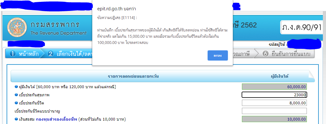 ปัญหายื่นแบบภาษีออนไลน์ 2563 ลดหย่อนประกันสุขภาพยังล็อคไว้ไม่เกิน 15000 บาททั้งที่เขาเพิ่มเป็น 25000 แล้ว
