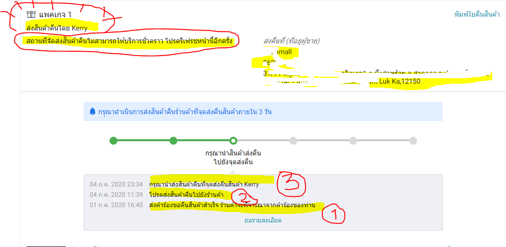 สถานที่จัดส่งสินค้าคืน มันคือไรครับ ผมต้องทำไงต่อ