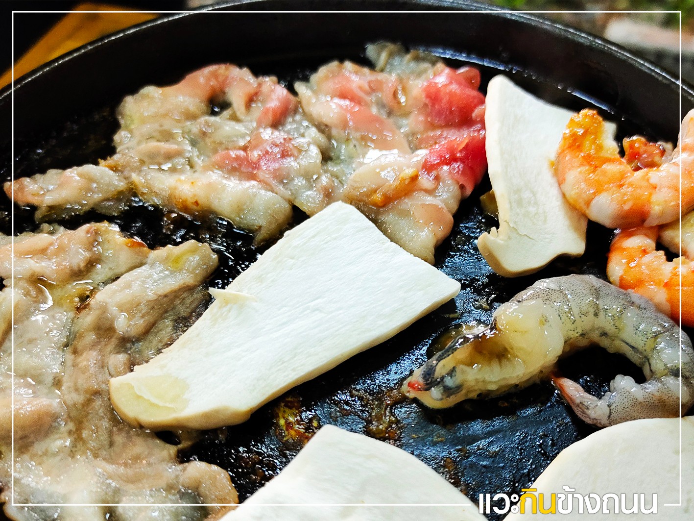 🐷 ส่วนใครไม่กินเนื้อก็มีหมูหมัก หมูสามชั้น เบคอน กุ้งขาวตัวโตๆ ปลาหมึก ยังมีชีสให้สั่งอีกด้วย น้ำอัดลมเป็นแบบรีฟิล