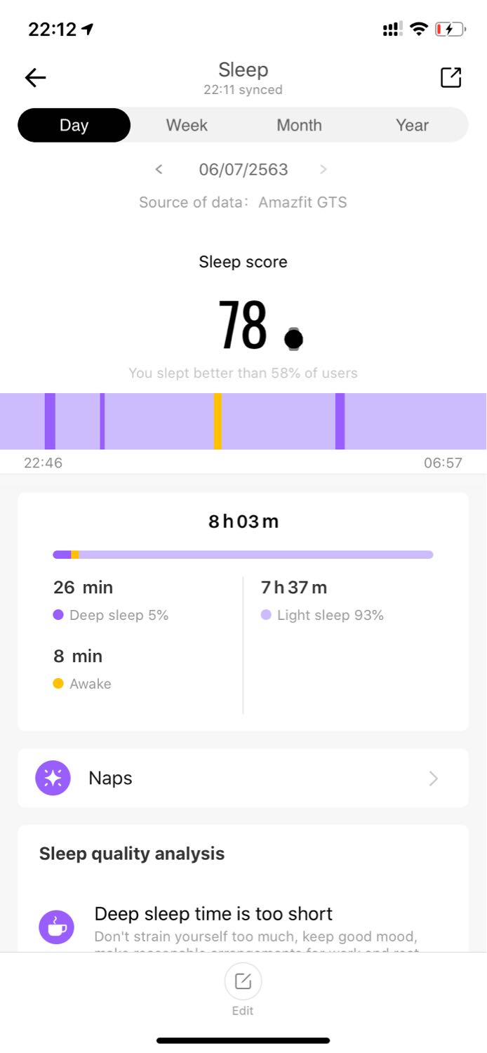 Deep sleep ค่อนข้างน้อยไม่แน่ว่าเพราะนาฬิการึป่าว?