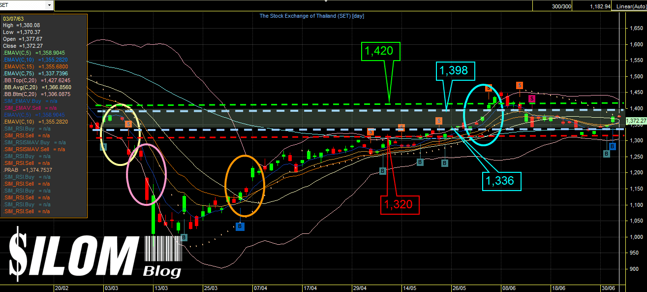 โอกาสที่ SET จะปรับตัวเพิ่มขึ้นในสัปดาห์หน้านี้ ประเมินว่าไม่น่าจะเกิน บริเวณแนวต้าน 1,420 เว้นเสียแต่ว่าจะมีข่าวดีเกิดขึ้นในระหว่างสัปดาห์ จึงอาจจะสามารถทะลุแนวต้าน 1,420 ไปได้ แต่โดยส่วนตัวประเมินว่าไม่น่าจะผ่านแนวต้าน 1,420 ไปได้ครับ