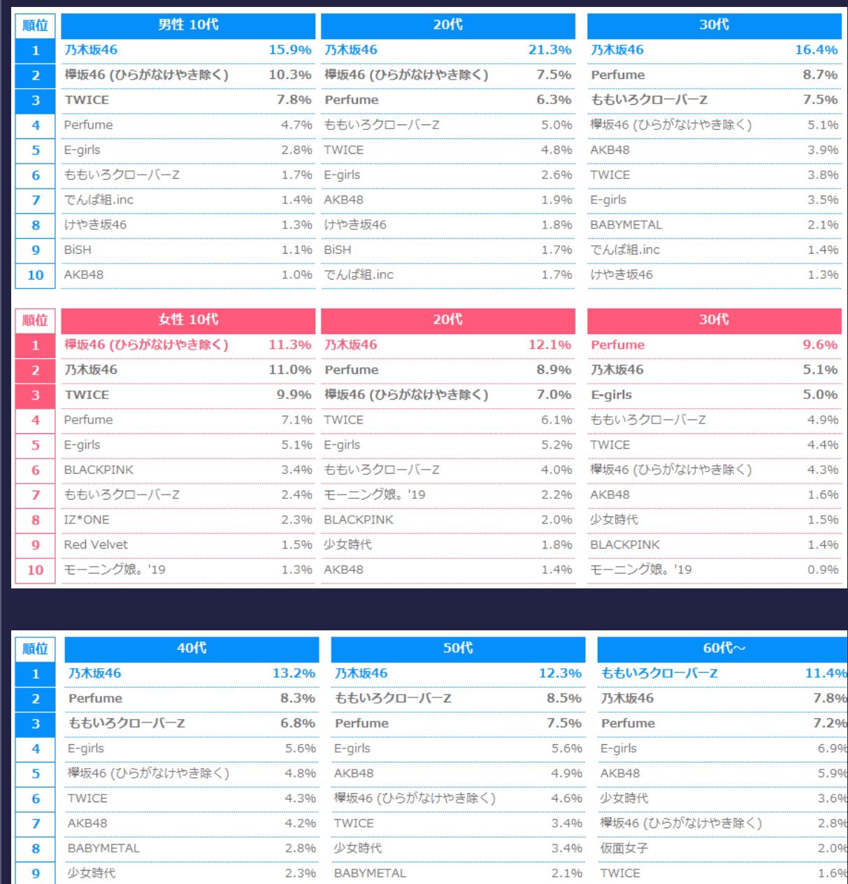 แต่ไม่ทราบว่าเป็นการจัดอันดับอะไรเพราะเป็นภาษาญี่ปุ่น แต่สะดุดตาตรงที่มีชื่อวง 46 ติดอันดับต้นๆทุก colum เลยคิดว่าทางฝั่งเกาะ