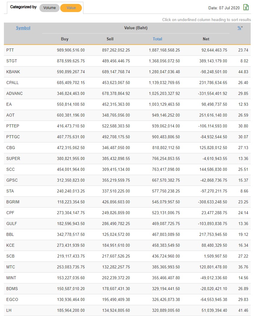 นักลงทุนต่างชาติ NVDR ซื้อ-ขาย มูลค่าสูงสุด 25 อันดับ 07/07/63