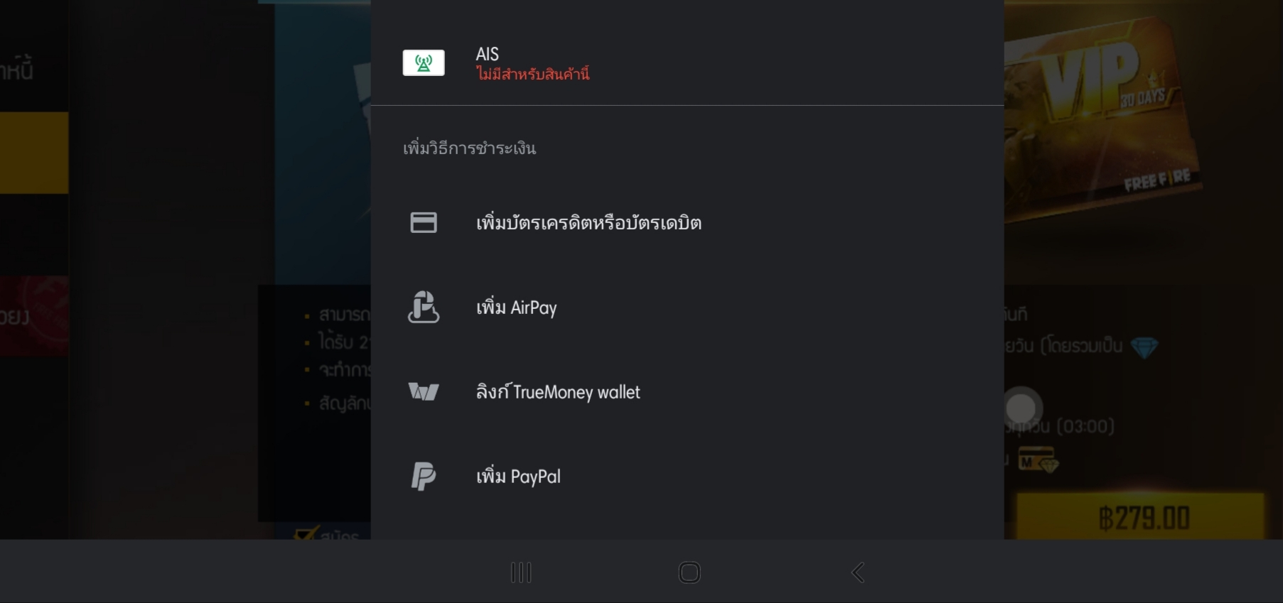 ชำระเงินผ่านเบอร์Aisไม่ได้ (ใช้ios)