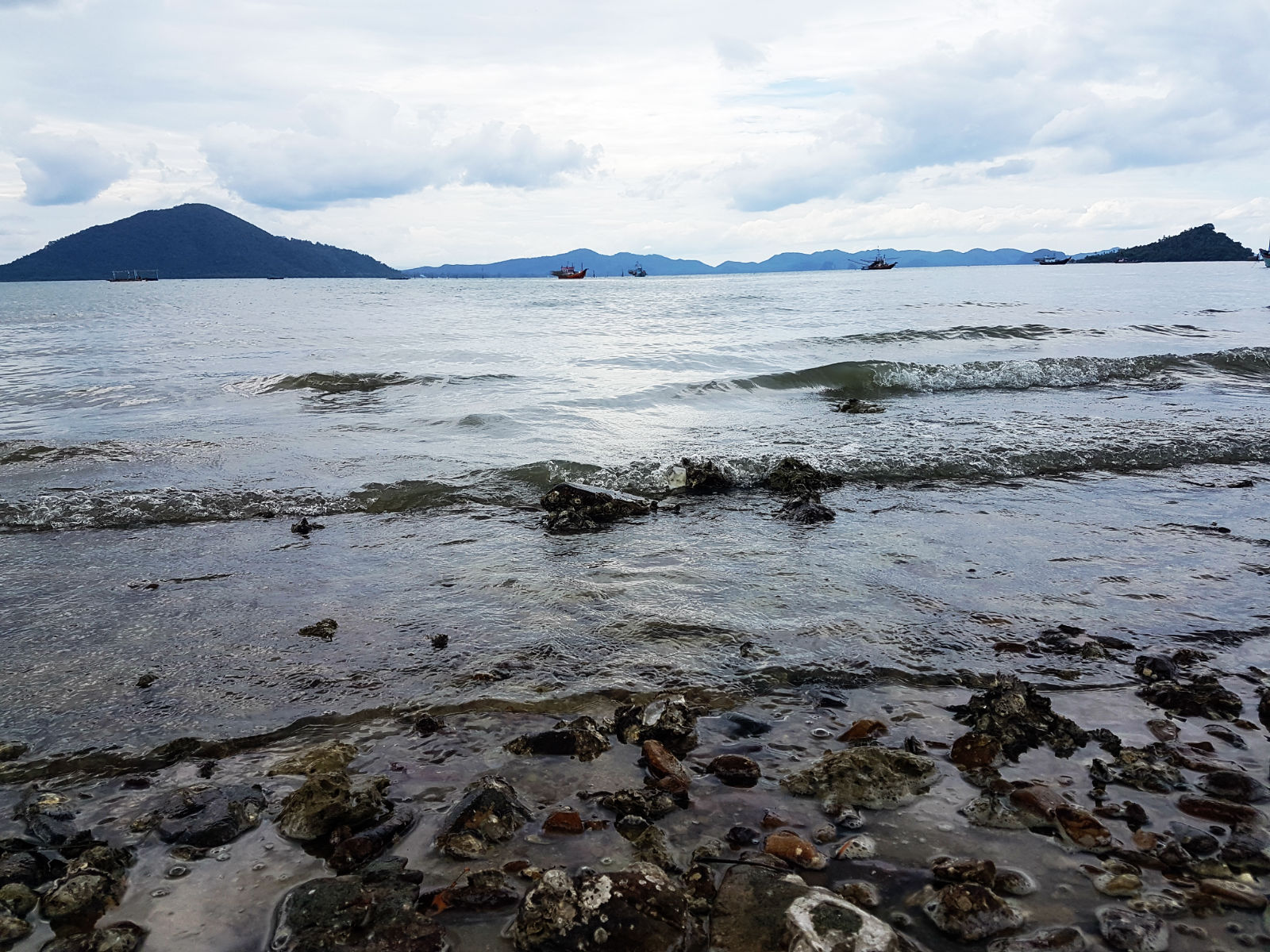 แวะ 1 ครั้งที่ปั๊ม ปตท. สามร้อยยอด สวย ทันสมัยดี แถมร้าน Amazon ยังเปิดดึกอีกด้วยไม่แน่ใจว่าตลอดไปหรือแค่เฉพาะช่วงเทศกาลวันหยุดยาว ลุยกันต่อครับ ถึงตอนเช้าดูทะเลพอดี การไปเกาะพิทักษ์ต้องจอดรถไว้ที่บนฝั่งแล้วก็นั่งเรือข้ามไปอีกที โดยเรือก็จะเป็นของ Home stay ของที่เราจะไปพักนั่นน่ะล่ะครับที่มารับ เสียค่าจอดรถวันละ 50 บาท ปลอดภัยดีมีคนเฝ้า ตัวเกาะพิทักษ์กับฝั่งที่จอดรถไม่ไกลกันมากสามารถมองเห็นกันได้ แต่ปัญหาคือน้ำลดลงเราต้องเดินลงไปในทะเลเพื่อขึ้นเรือไปเกาะพิทักษ์อีกทีลำบากนิดหน่อยครับ
