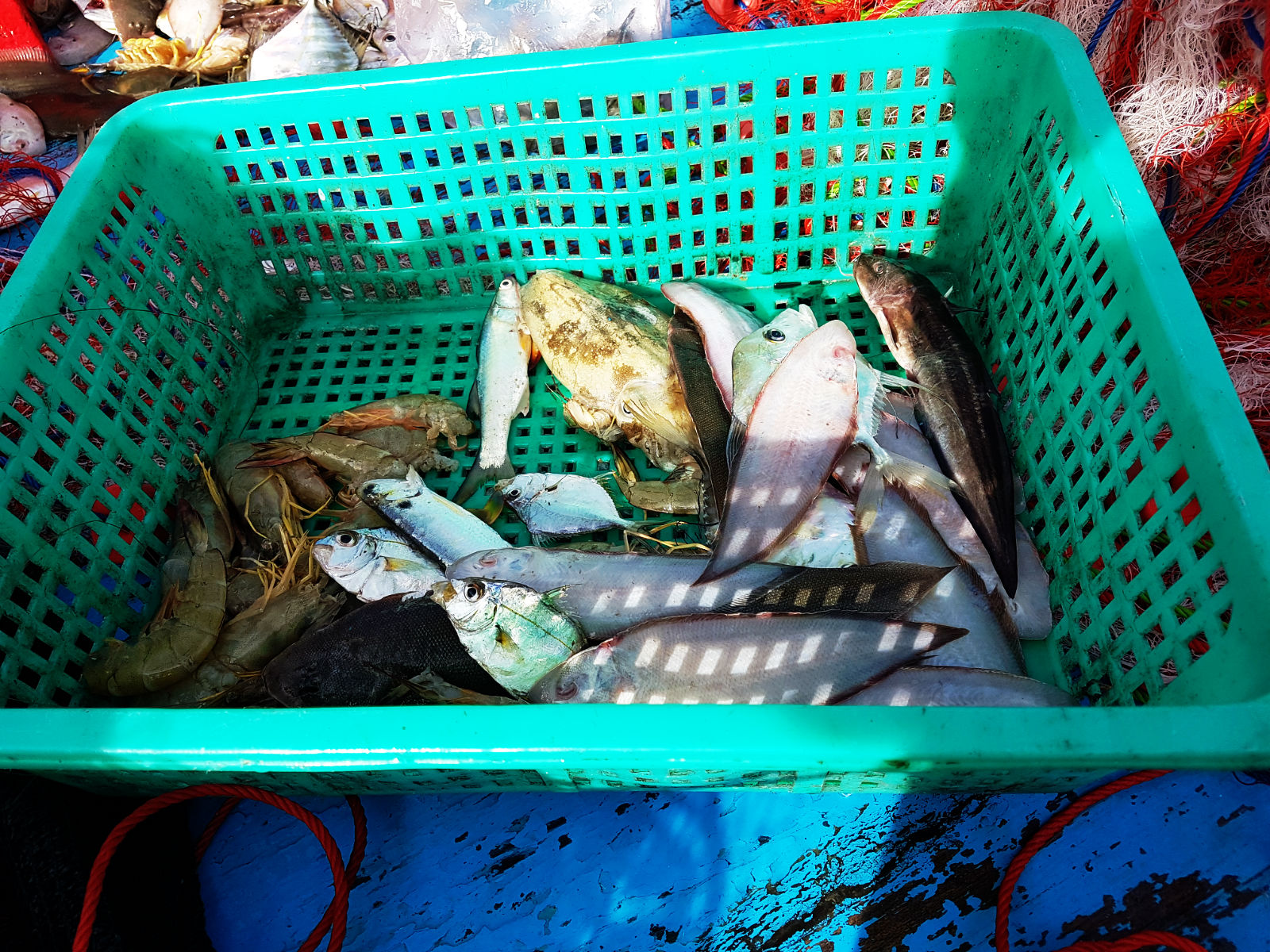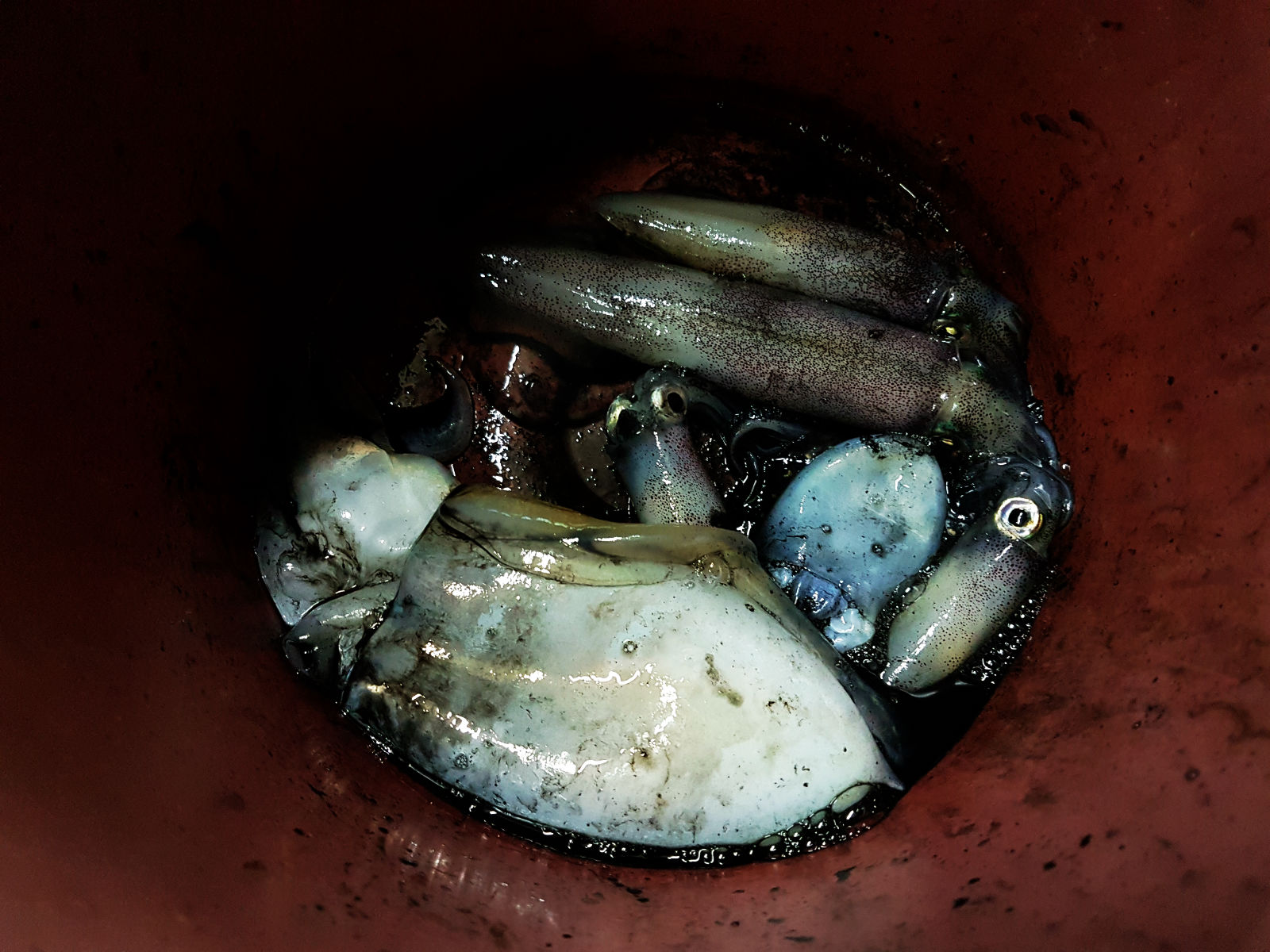 เรือมาแล้ววววว ตอนตกไม่ได้ถ่ายรูปเลย มึนๆ หัวและมืดๆ ได้หมึกมาไม่กี่ตัวพอได้ชิมแบบสดๆ จิ้มน้ำจิ้มซีฟู๊ด
