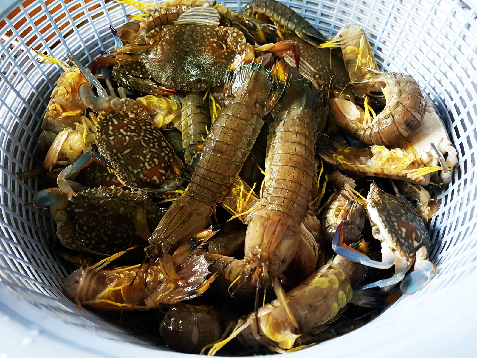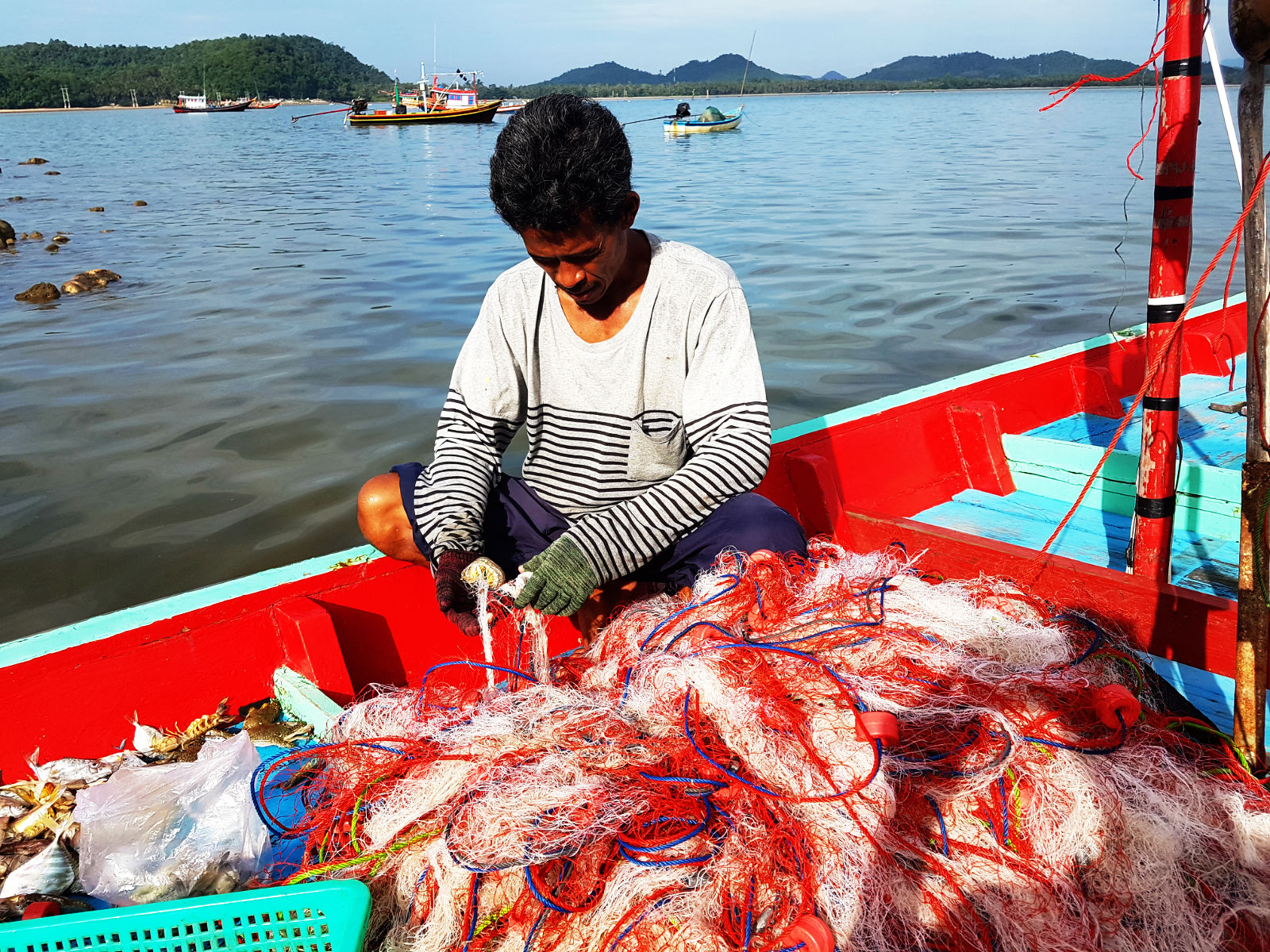 พี่เขาบอกว่าเกาะปิดช่วงโควิดที่ผ่านมา ไม่มีทักท่องเที่ยวมาเลย เหมือนทะเลได้พักสัตว์น้ำต่างๆ ชุกชุม อุดหนุนกุ้งแชบ๊วยไป 10 กิโล แกบอกแถมพวกกั้งและปูม้าที่ติดขึ้นมาให้ทั้งหมดเลยเดี๋ยวเอาไปส่งให้ที่ที่พักเลย สบายละมื้อเย็นมีของทะเลสดๆ เพิ่มจากที่ทางที่พักเตรียมไว้ให้ หลังจากนั้นเรือก็มารับไปดำน้ำครับ