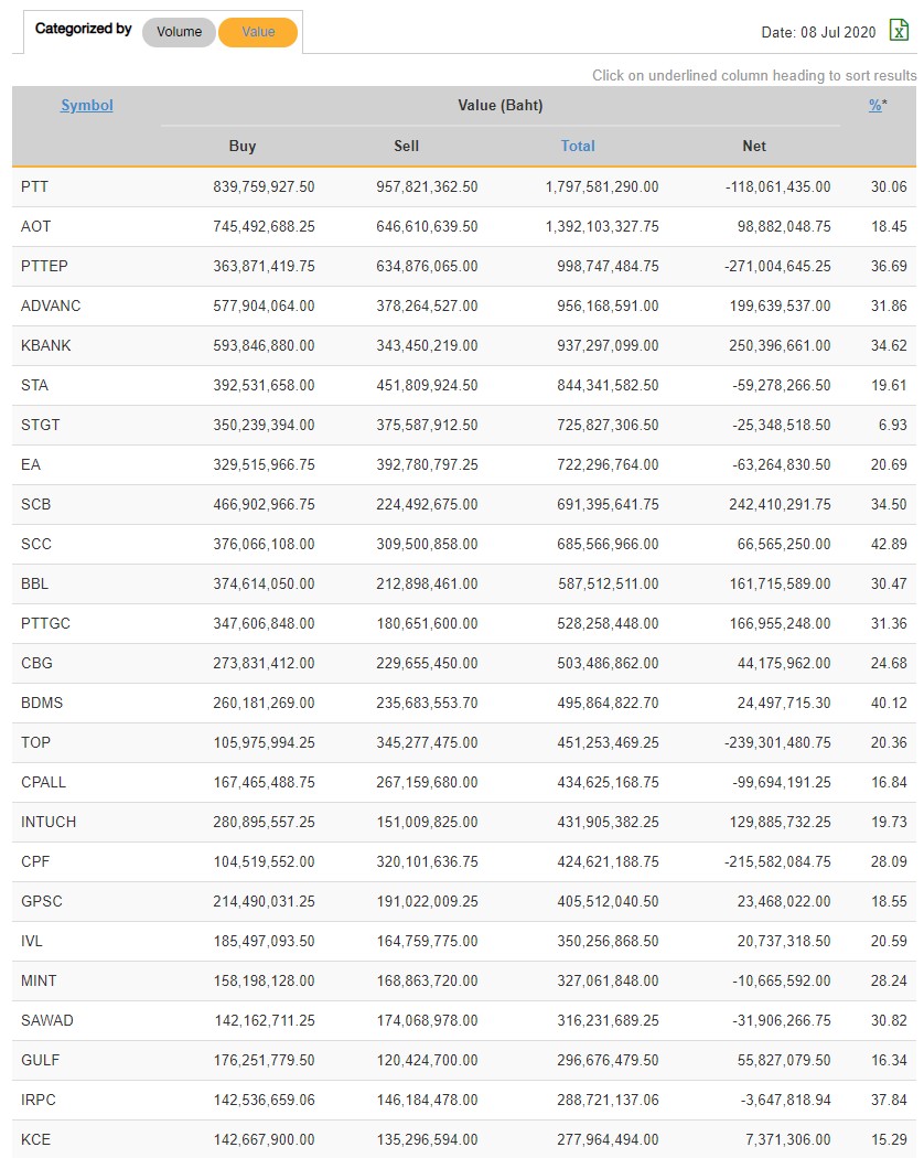 นักลงทุนต่างชาติ NVDR ซื้อ-ขาย มูลค่าสูงสุด 25 อันดับ 08/07/63