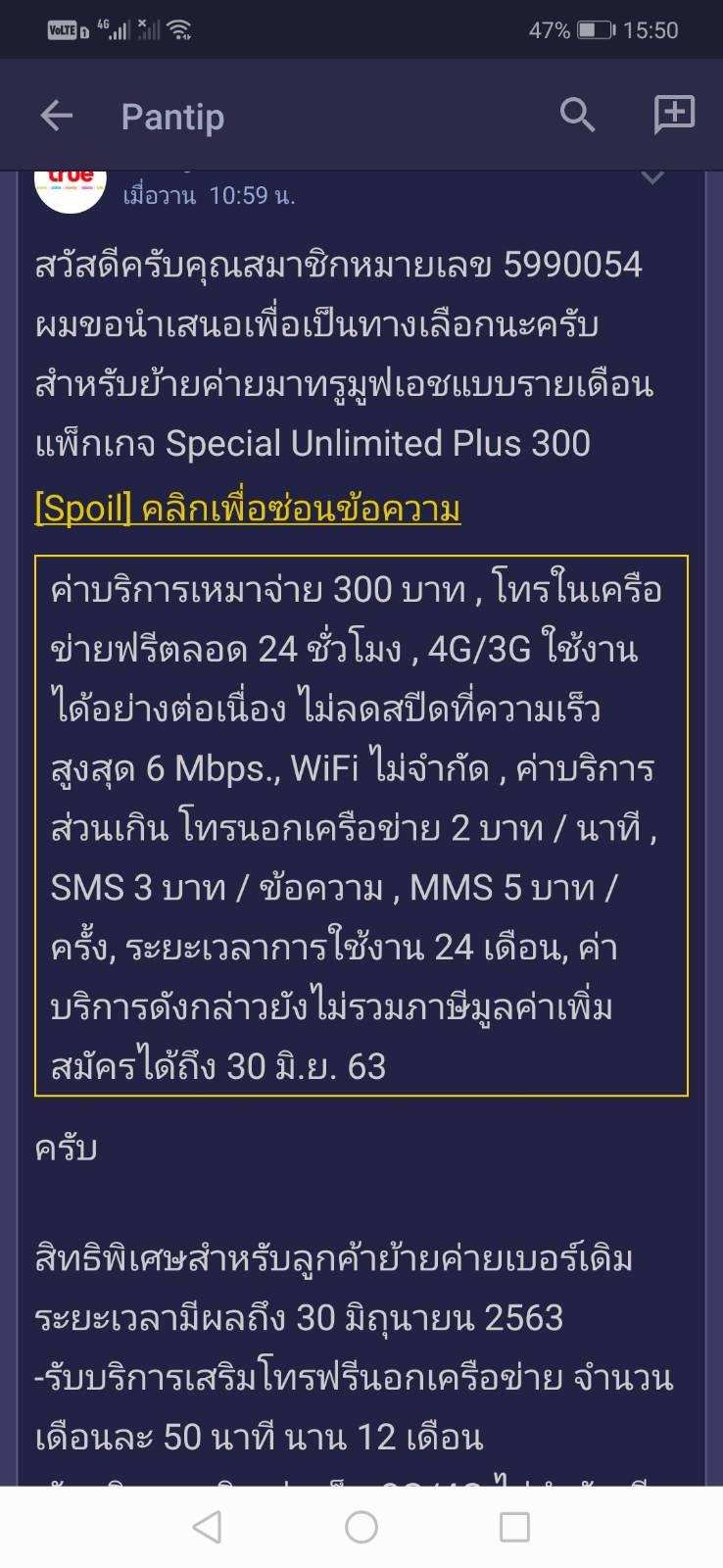 ย้ายค่าย Ais ไป True ขอโปร Special Unlimited Plus 300 ได้ไหม