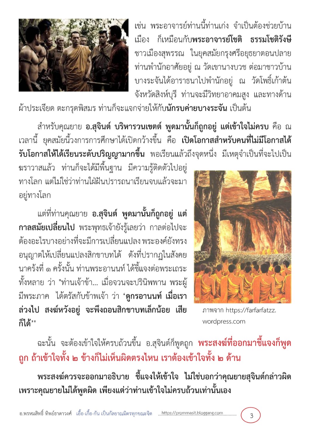 พระสงฆ์ควรจะออกมาอธิบาย ชี้แจงให้เข้าใจ ไม่ใช่บอกว่าคุณยายสุจินต์กล่าวผิด เพราะคุณยายไม่ได้พูดผิด เพียงแต่ว่าท่านเข้าใจไม่ครบถ้วนเท่านั้นเอง