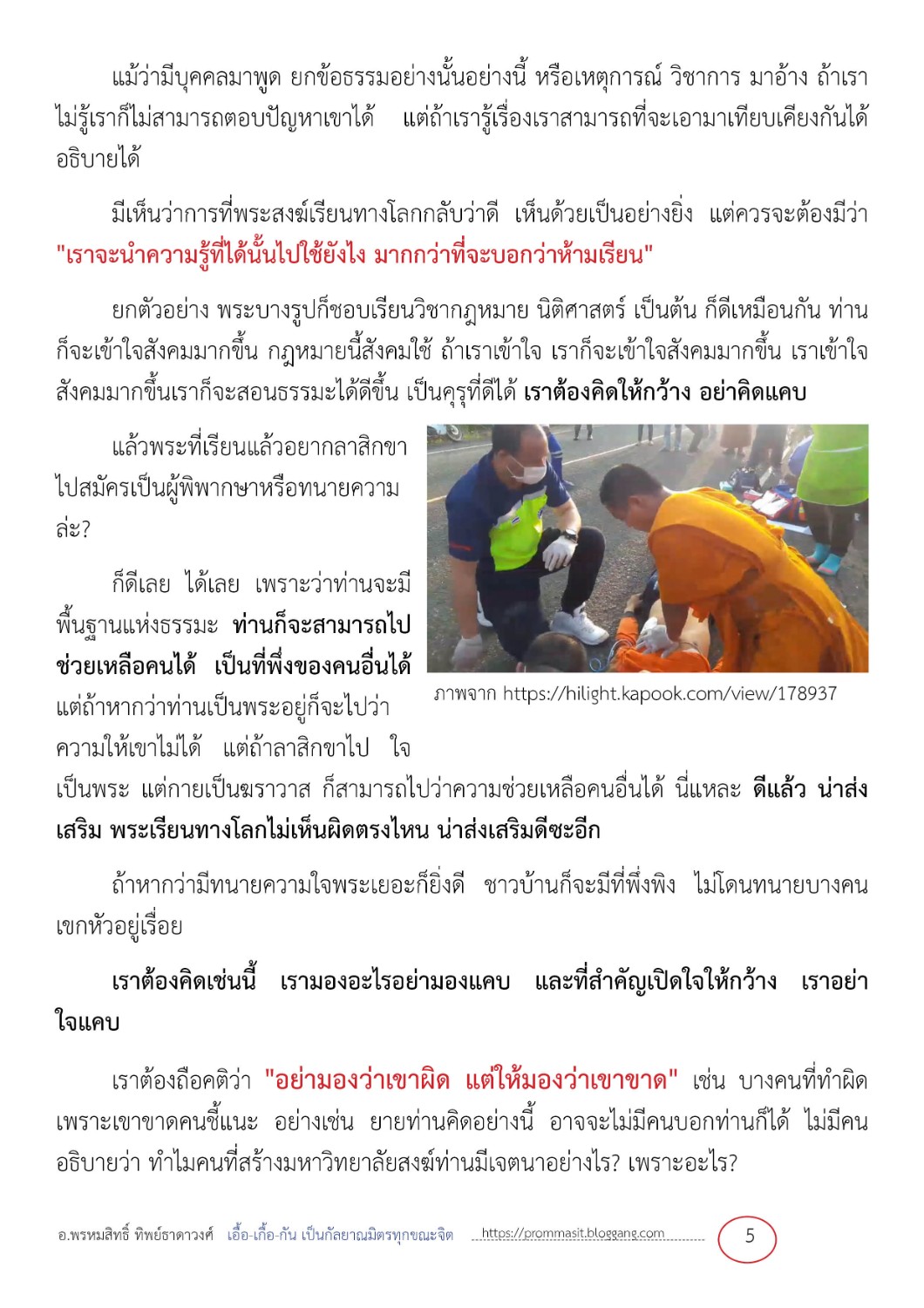 เราต้องถือคติว่า "อย่ามองว่าเขาผิด แต่ให้มองว่าเขาขาด" เช่น บางคนที่ทำผิด เพราะเขาขาดคนชี้แนะ อย่างเช่น ยายท่านคิดอย่างนี้ อาจจะไม่มีคนบอกท่านก็ได้ ไม่มีคนอธิบายว่า ทำไมคนที่สร้างมหาวิทยาลัยสงฆ์ท่านมีเจตนาอย่างไร? เพราะอะไร?