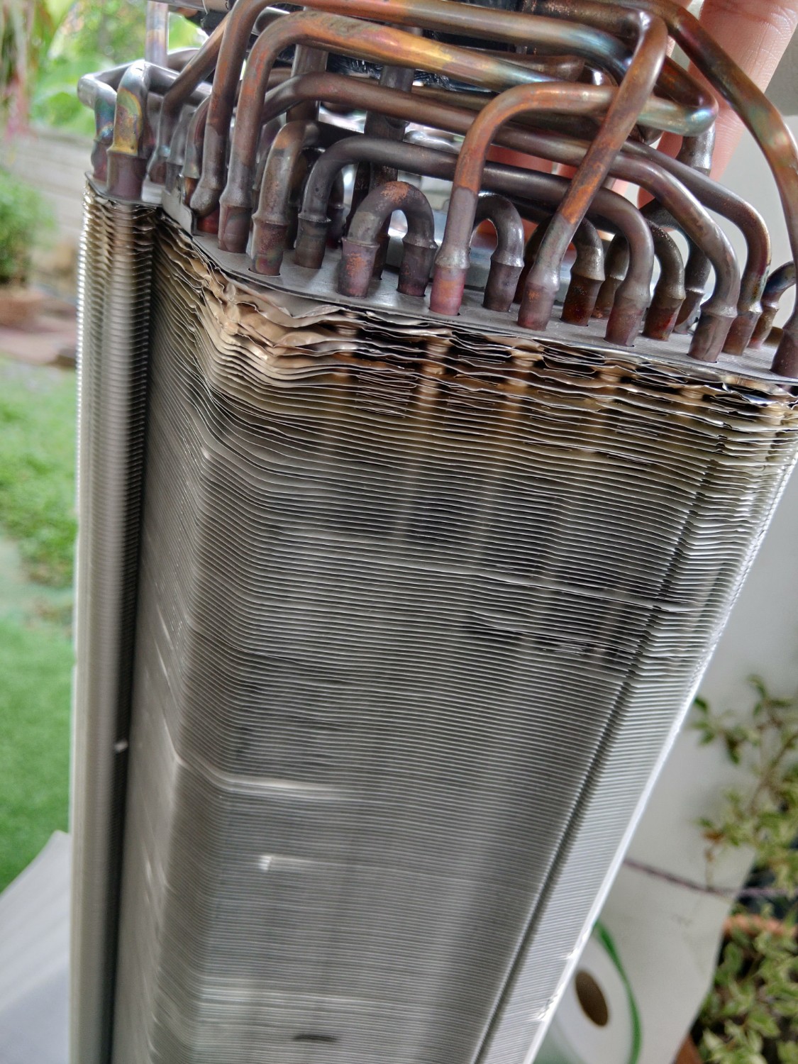 แอร์ใหม่ล้าง3เครื่องอายุการใช้งาน 3ปี วันนี้เรียกช่างนอกเข้ามาล้างแอร์ เปิดมาเจอ1เครื่อง สภาพโหดเหมือนแอร์เก่า แผงคอยเย็นล้ม อารมณ์เหมือนโดนย้อมแมวเลย (ขอย้ำแอร