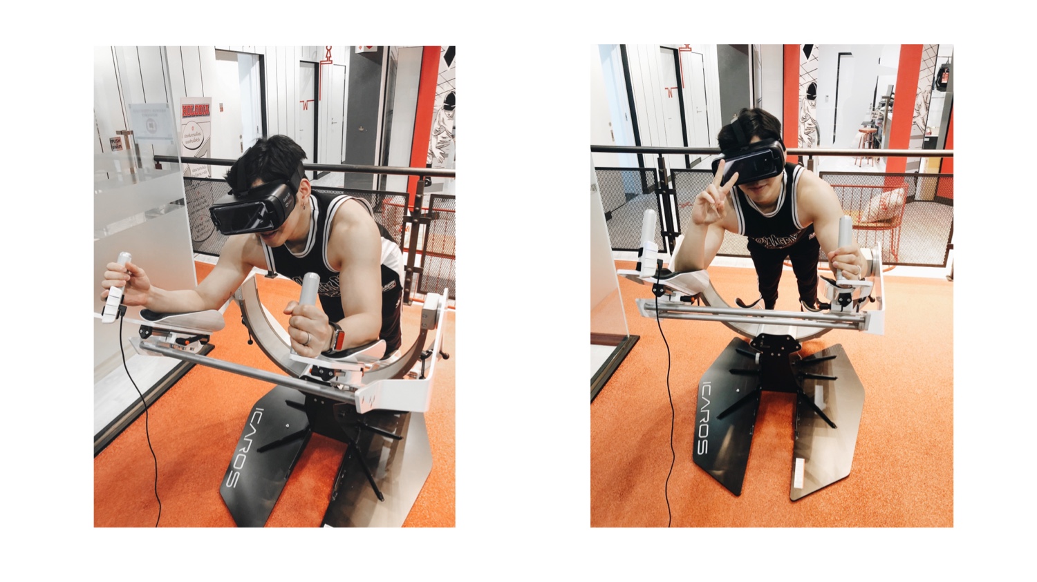 ภายในแว่น VR ที่เรามองจะเป็นเกม VR ให้เราได้เล่น โดยการบังคับจะอาศัยการ Plank และการเกร็งลำตัว