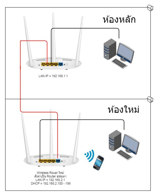 กรณีที่ คอมพ์ทั้ง 2 และอุปกรณ์อื่นๆ ไม่ต้องแชร์ทรัพยากรกัน