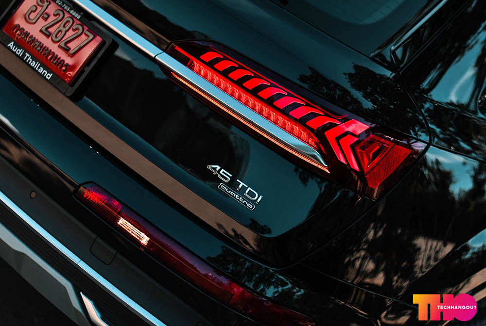 ไฟหน้านั้นเป็นจุดที่แตกต่างมากๆเมื่อเทียบกับรุ่นก่อน และเทียบกับตัว S-line ครับ แน่นอนว่าทรงไฟหน้าเปลี่ยนไปเยอะมากมีความโค้งมนสวยงามและมีงานออกแบบที่แตกต่างกว่าเดิม แต่ในรุ่นที่เรารีวิวนั้นจะเป็นไฟหน้า LED ปกติพร้อมกับหลอดไฟเลี้ยวแบบหลอดไส้ครับ เลยค่อนข้างธรรมดาไปนิดหน่อย แต่เรื่องความสว่างนั้นไม่ได้แตกต่างกันครับแต่แค่ไม่มีเทคโนโลยี MATRIX LED แบบรุ่น S-Line ครับรวมถึงไฟ DRL อะไรแตกต่างกันทั้งหมดเลย แต่คันที่เรารีวิวนั้นยังคงมีไฟตัดหมอกและแสงอะไรนั้นกินไปถึงขอบข้างได้กำลังดีครับ มองเห็นชัดเจนเลยและแน่นอนว่าด้วยความที่มันเป็นรถนำเข้าทำให้มันมีที่ล้างไฟหน้าเวลาหิมะตกหรือโคลนเลอะได้ด้วย ส่วนตัวไฟท้ายนั้นแน่นอนว่าค่ายนี้เวลาเปิดฝาท้ายมันยกไฟไปทั้งหมดทำให้ต้องมีไฟท้าย 2 ชุดครับ ชุดล่างนั้นจะทำงาน เวลาเปิดฝาท้าย เพื่อความปลอดภัย และ มีไฟตัดหมอกหลัง และ ไฟถอยหลังในส่วนข้างล่างครับ และส่วนข้างบนนั้นจะเป็นไฟหลักสวยงามแบบ 3 มิติ ที่เป็นไฟเบรคและไฟเลี้ยวแบบ Dynamic ไฟเลี้ยววิ่งนั้นเองถือว่างานออกแบบไฟทั้งหมด ค่ายรถยนต์ AUDI นั้นเป็นค่ายที่ออกแบบไฟหน้าไฟท้ายได้ล้ำเกินค่ายอื่นๆเยอะมากและสวยกว่าแบบชัดเจนครับ