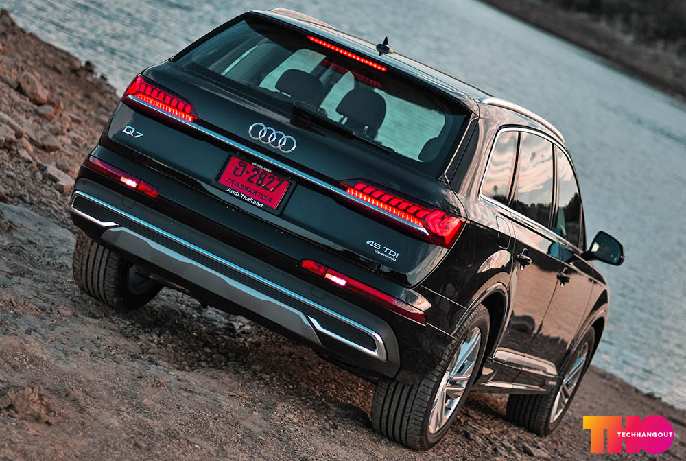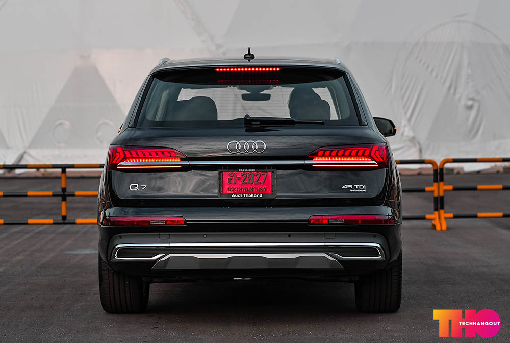 AUDI Q7 45TDI QUATTRO ในรุ่นนี้จะเป็นรุ่นที่เปลี่ยนหน้าตา Minorchange แล้วนะครับและในไทยนั้นมีการเปิดตัวไปเมื่อต้นปีนี้เองต้องบอกเลยว่าเป็นการเปลี่ยนแปลงที่เยอะมากๆทั้งในด้านหน้าด้านท้าย รวมถึงไฟหน้าและไฟท้ายนั้นก็มีการเปลี่ยนแปลงทั้งหมดถือว่าแตกต่างกับรุ่นก่อนหน้าแบบชัดเจน เปลี่ยนเยอะจนคิดว่าเป็นรุ่น ModelChange ก็ว่าได้ครับ จะมีแค่ส่วนเดิมคือส่วนของด้านข้างเท่านั้นเองครับ และการเปลี่ยนแปลงครั้งนี้เป็นการยกดีไซน์ยุคใหม่มาใช้งานทั้งหมดรวมถึงภายในล้ำๆครับ ส่วนทางด้านเครื่องยนต์ในรุ่นนี้ยังคงใช้เครื่องดีเซล V6 Commonrail Direct Injection ขนาด 3.0 ลิตร 2,967 ซีซี. พ่วงเทอร์โบ พละกำลังสูงสุด 249 แรงม้า ที่ 2,910 – 4,500 รอบ/นาที แรงบิดสูงสุด 600 นิวตันเมตร ที่ 1,500 – 3,000 รอบ/นาที เกียร์อัตโนมัติ Tiptronic 8 จังหวะ ขับเคลื่อน 4 ล้อตลอดเวลา quattro permanent all-wheel drive ความจุถังน้ำมัน 85 ลิตร เป็นออฟชั่นเดียวแล้ว และในส่วนของระบบฟีเจอร์การช่วยเหลือ นั้นยังคงไม่มีอะไรมาให้เท่าไรนักครับแอบน่าเสียดายพอสมควร และ หน้าปัด Virtual Cockpit ก็ยังไม่มีมา แต่อย่างน้อยก็ได้ในเรื่องของ หน้าจอกลาง ระบบสัมผัส Touchscreen ขนาด 8.8 นิ้ว และ หน้าจอควบคุม Multifunction แบบสัมผัส พร้อมตอบสนองการสั่งงาน Haptic ขนาด 8.6 นิ้ว แบบเดียวกับรุ่นพี่ AUDI Q8 มาเลย พร้อมกับยกดีไซน์ออกแบบมาทั้งหมด รวมถึงไฟหน้าไฟท้ายแบบใหม่ แต่ในตัวนี้ไม่ใช่ Matrix LED เพราะเป็นรุ่นปกติ ไม่ใช่ S-Line นะครับ และตัวนี้จะมีจุดแตกต่างทั้งเรื่องของ ช่วงล่างถุงลม และ ชุดตกแต่งภายนอกแบบ S-Line ระบบปรับอากาศแบบอัตโนมัติ แยกอิสระ 4-Zones รวมถึงไม่มี ระบบเสียงระดับพรีเมียม BOSE พร้อมระบบเสียง 3 มิติ และ ลายล้อนั้นจะเป็นคนละลายกับรุ่น S-line นั้นเองครับ ทำให้ไฟหน้าเลยแตกต่างกับที่เคยเห็นกัน ส่วนทางด้านราคานั้น ตัวที่เรารีวิวนั้นจะเป็นตัว Q7 45 TDI quattro 4,849,000 บาท และ Q7 45 TDI quattro S-Line 5,299,000 บาท สำหรับรุ่นสูงสุด แอบเสียดายไม่มีหลังคากระจกใส่เข้ามาให้เลยครับ