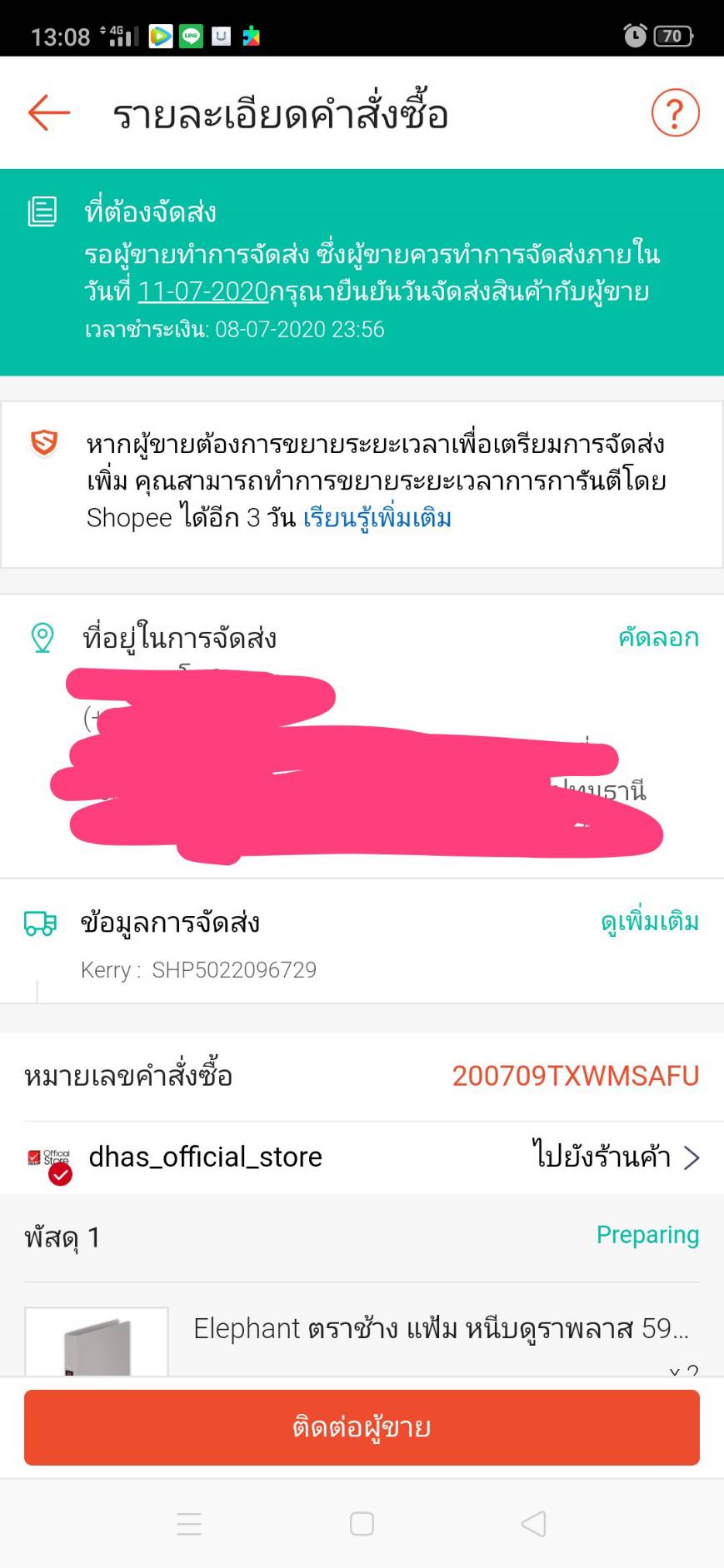 1. อันนี้คือร้านแรกที่เราสั่งด้วย สถานะยังขึ้นเป็นที่ต้องจัดส่ง สั่งซื้อเมื่อวันที่ 8/7/2020