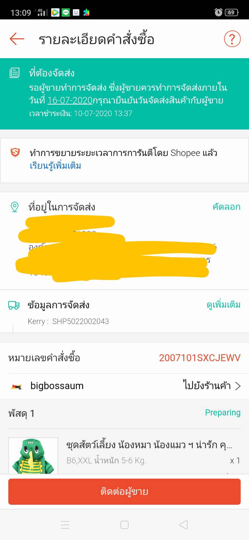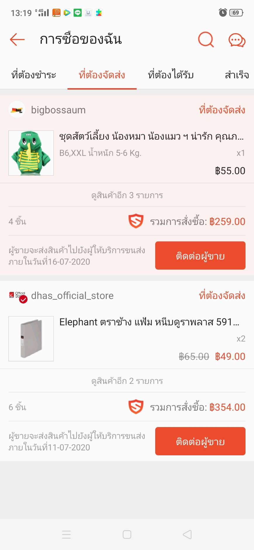 2. อันนี้ร้านที่ 2 ที่เราซื้อเมื่อวันที่ 10/7/2020 ยังขึ้นเป็นสถานะที่ต้องจัดส่งเหมือนเดิม