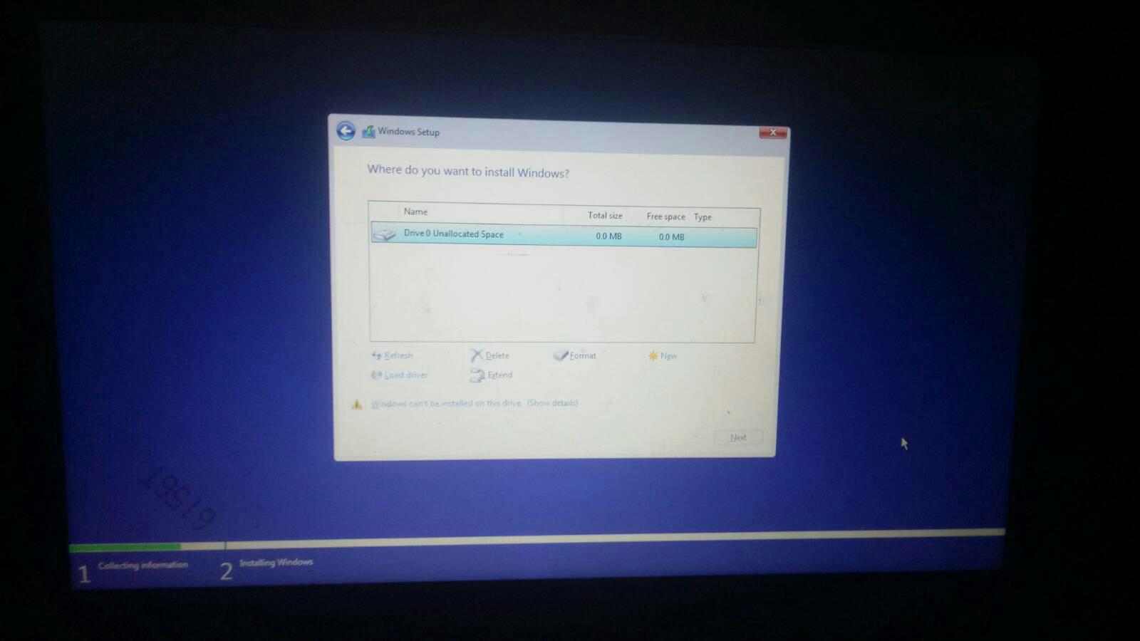 ผมซื้ออุปกรณ์มาประกอบเครื่องคอมพิวเตอร์ใหม่ครับ หน้า bios ก็มองเห็น hdd ปกติ แต่ติดปัญหาตอนที่ผมลง windows 10 พอถึงหน้าต่างแบ่ง partition มันมีแค่ว่า Disk 0 unallocated space และความจุก็เป็น 0.0mb ครั