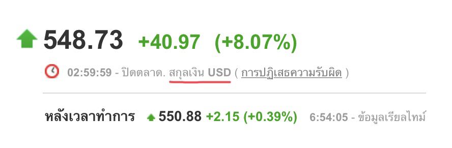 2. ราคาหุ้นในรูปข้างล่าง มีหน่วยเป็น USD ตามที่ขีดเส้นแดงไว้ใช่มั้ยคะ ต้องเอามาแปลงเป็นบาทอีกที ?
