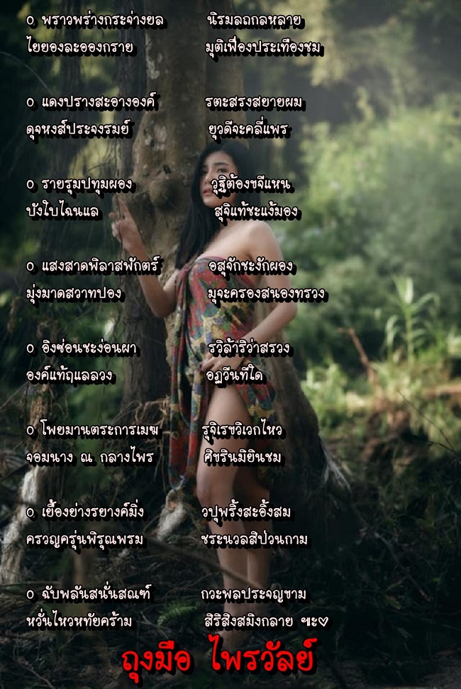 จขถม. คงจะชมป่าเขาลำเนาไพรก่อน แต่ไปๆ มาๆ มีนวลนางเลอโฉมปรากฏ เลยชมนางกลางไพร และท่าทางจะพานางกินตับด้วย ^^