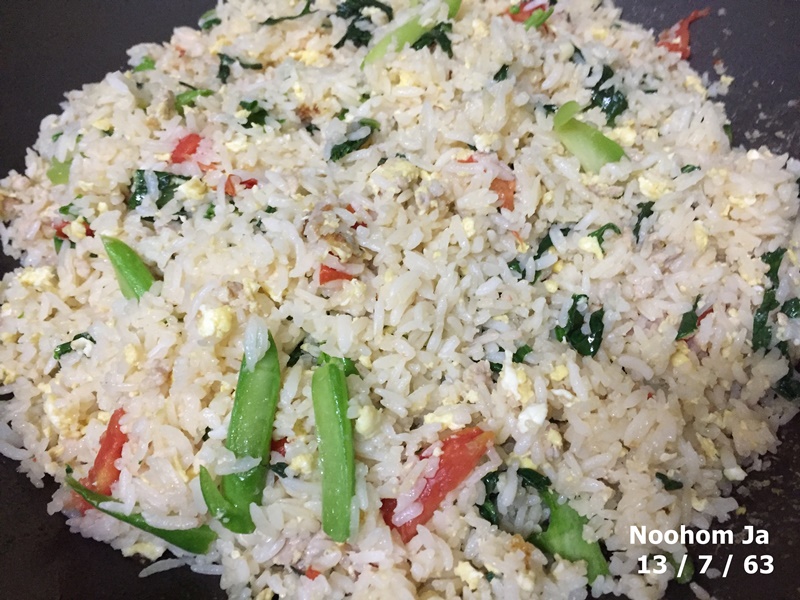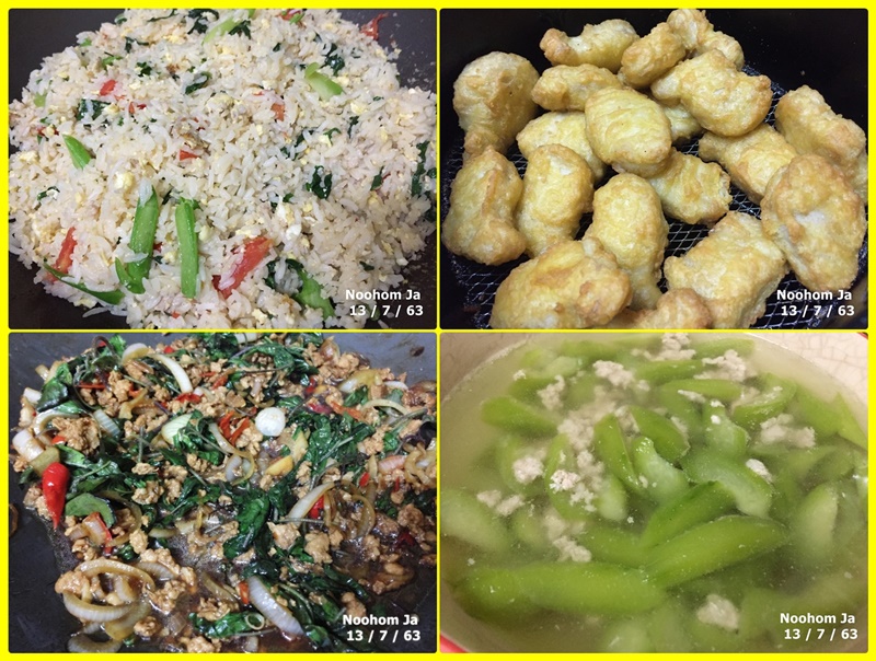 วันจันทร์ 13 กรกฎาคม 2563 เช้าที่เชียงใหม่ฝนยังคงตกพรำให้ความขี้เกียจงอกงาม บนโต๊ะอาหารเช้านี้ ข้าวผัด..ไก่จ้อ..กะเพราหมู..บวบต้ม อาหารยืดอายุให้ยืนยาว อย่าลืมเรื่องกินเรื่องใหญ่ ฝ่าฝนออกบ้านไปเป็นเรื่องรอง