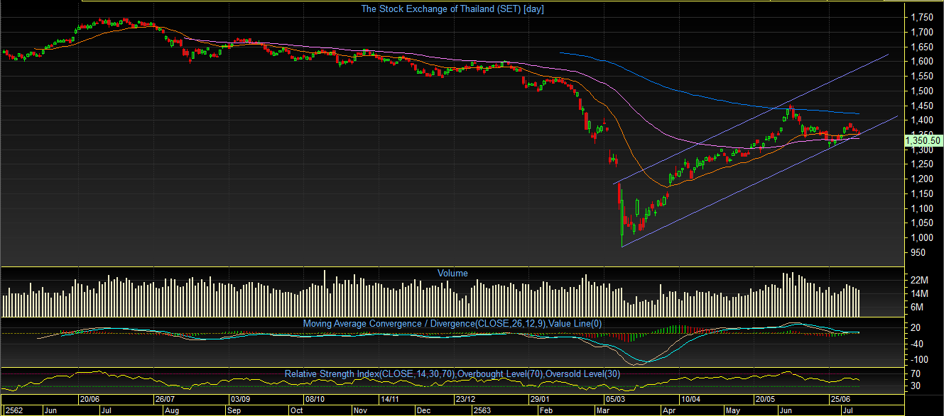 ก็มีโอกาสที่จะ Rebound กลับขึ้นไปทดสอบ 1400 จุดอีกครั้ง แต่ถ้าหากหลุด Support line ลงมา ก็เป็นไปได้ว่า จบ Pullback และยืนยันรูปแบบ Bearish Flag เตรียมเข้าสู่โหมด พักฐาน อีกครั้ง ก็เป็นได้
