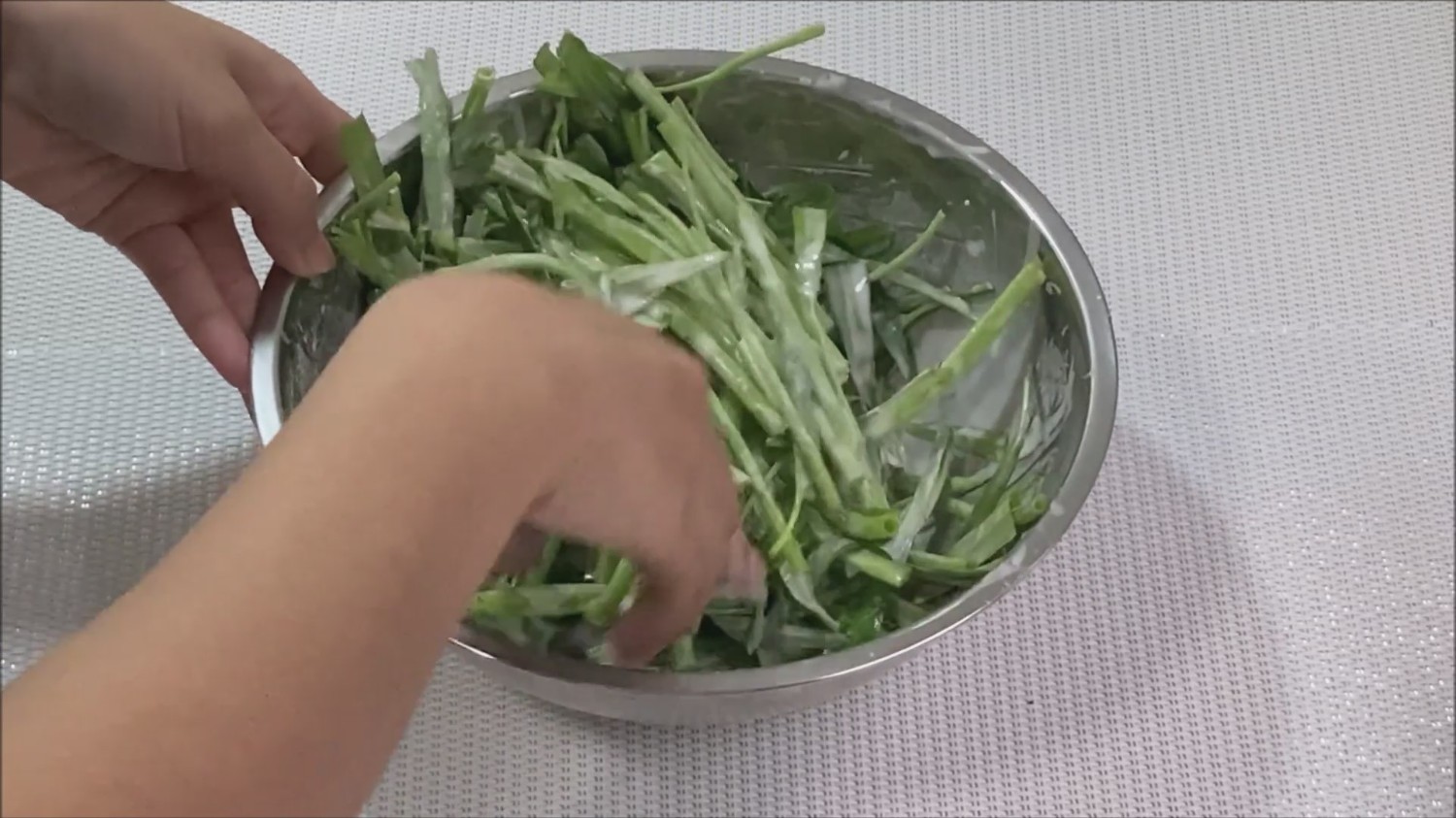 🍄🟫สูตร ‘ยำปวยเล้งเห็ดเข็มทอง’ อร่อยง่ายๆ เมนูเฮลตี้ไร้แป้ง ~~ • วัตถุดิบ: 1. ปวยเล้ง 200 กรัม (ล้างสะอาด) 2. เห็ดเข็มทอง 10