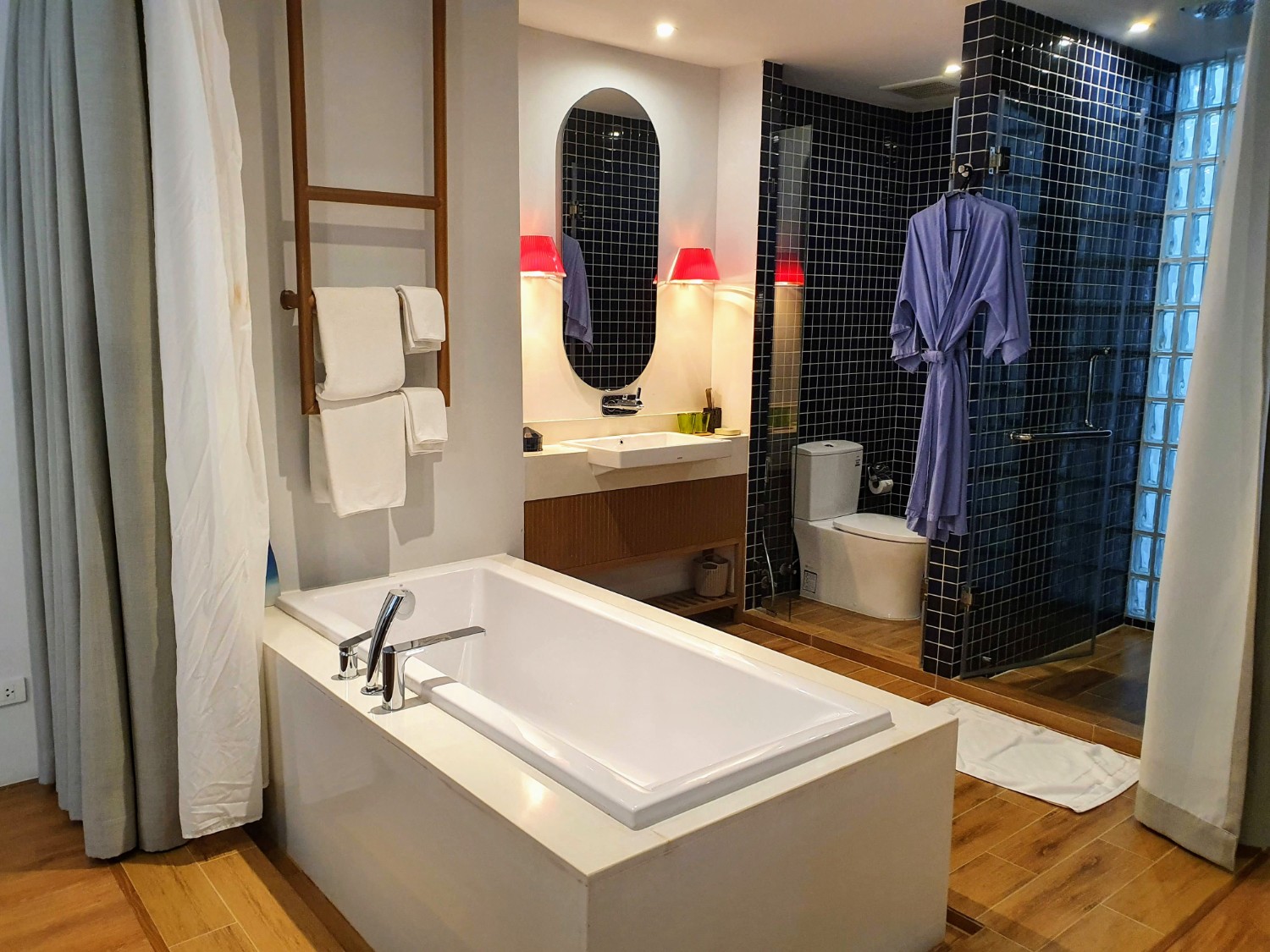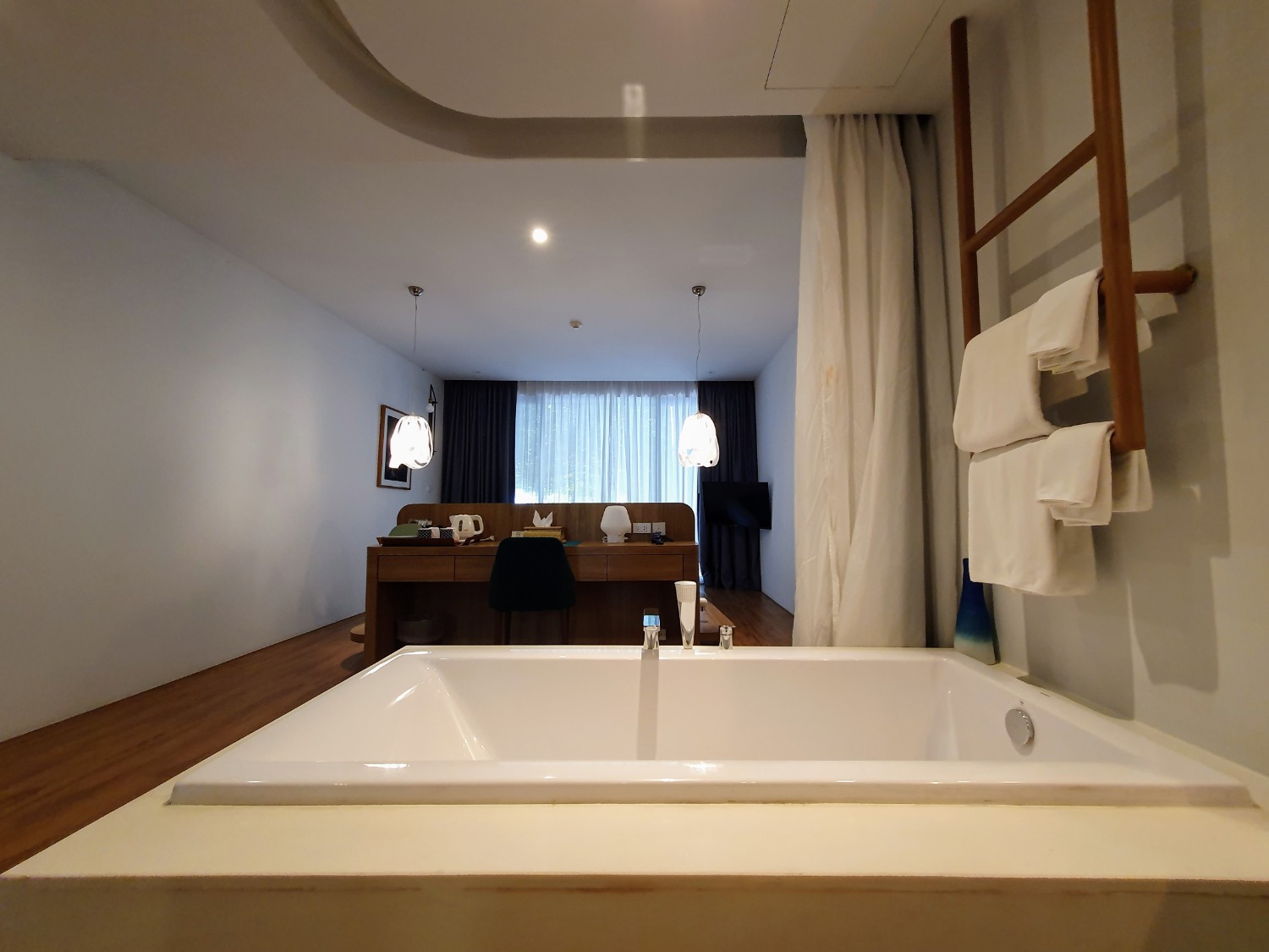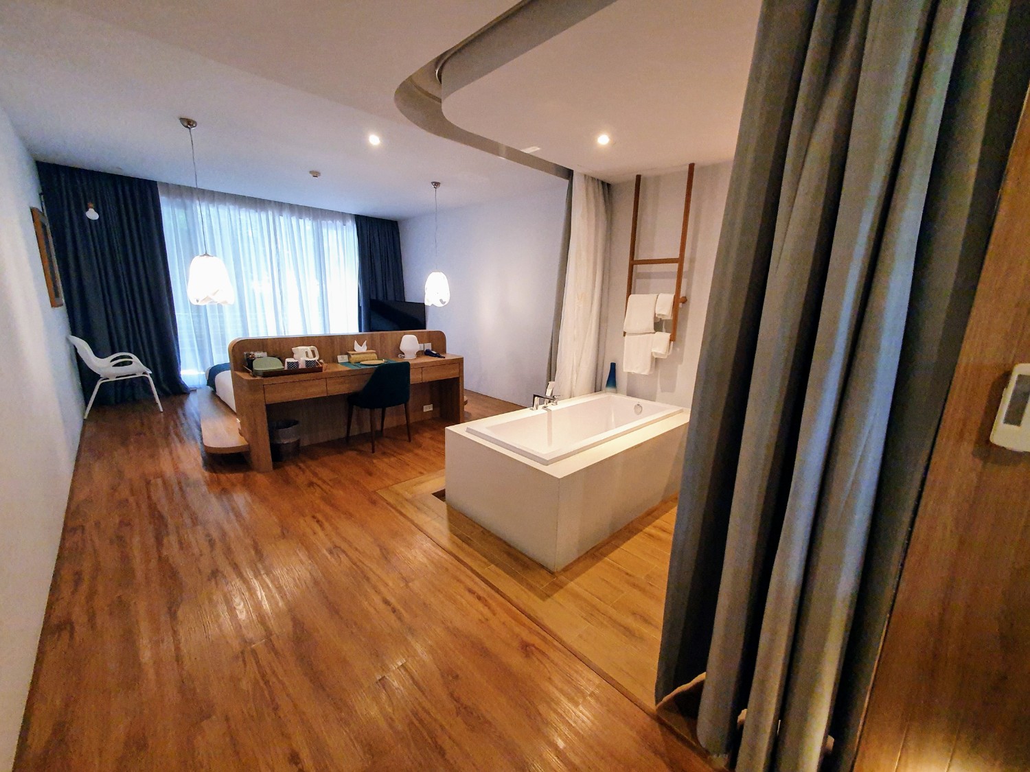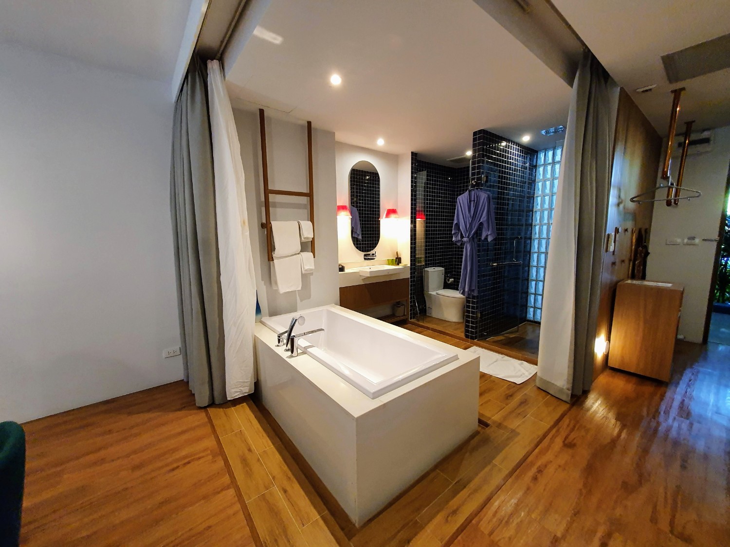 ห้องกว้าง มีอ่างอาบน้ำ อยู่ในห้องเลย