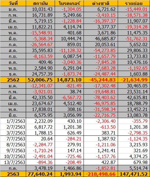 Sinthorn Summary 13/7/2563 : ต่างชาติซื้อสุทธิ 422.87 ลบ.