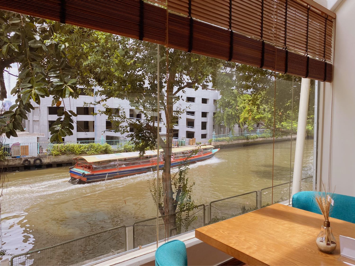 ที่นี่มีมุมหลังร้านเป็นคลองแสนแสบ เปลี่ยนคลองธรรมดาๆ ให้กลายเป็นโซนห้องกระจกหรูโอ่อ่าสวยงาม 🧡🧡 สวยจริงๆ กินไปชมคลองไป นั่งๆไปก็มีเรือขับผ่านมาให้ตื่นเต้นดี (ถ่ายให้ทันนะ แล่นเร็วมากกก)