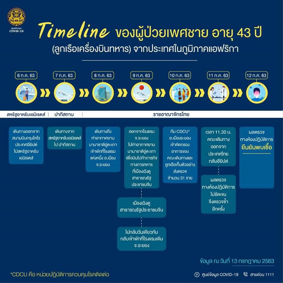 Timeline ของผู้ป่วยที่เป็นลูกเรือเครื่องบินทหาร จ.ระยอง และผู้ป่วยเด็กหญิงที่เดินทางมาพร้อมครอบครัวคณะทูตกรุงเทพฯ