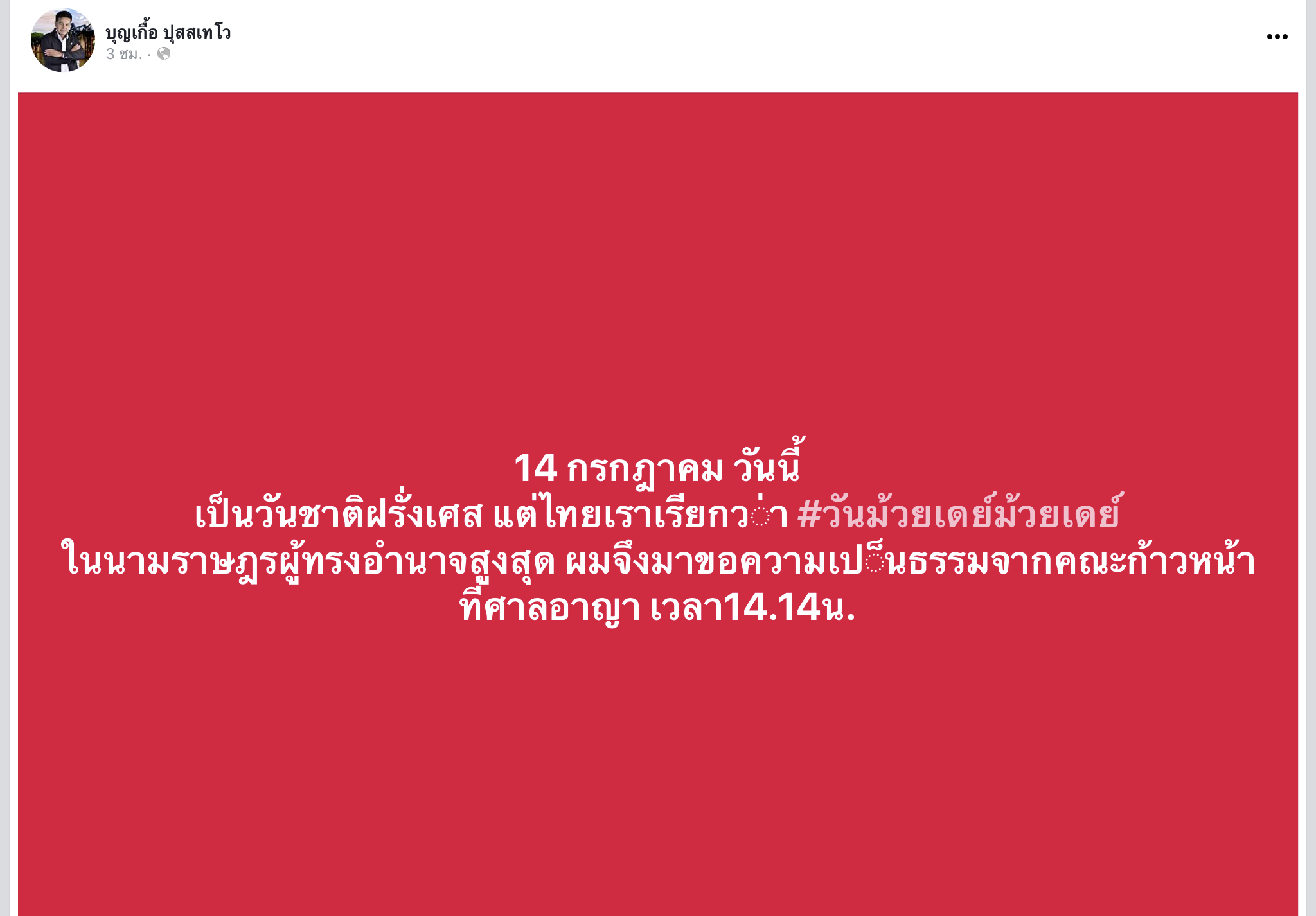 โปรดติดตามตอนต่อไป! "บุญเกื้อ" จ่อขออำนาจศาลเรียกเอกสารธนาคาร วันชาติฝรั่งเศส แฉ สเตทเม้นท์ลวงโลก วันที่ 13 ก.ค.63 นายบุญเกื้อ ปุสสเทโว อ