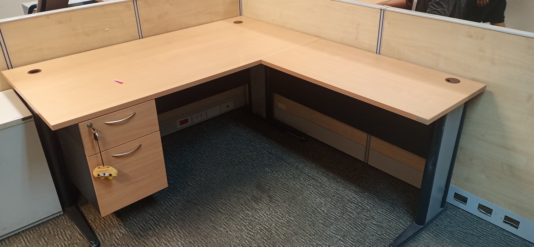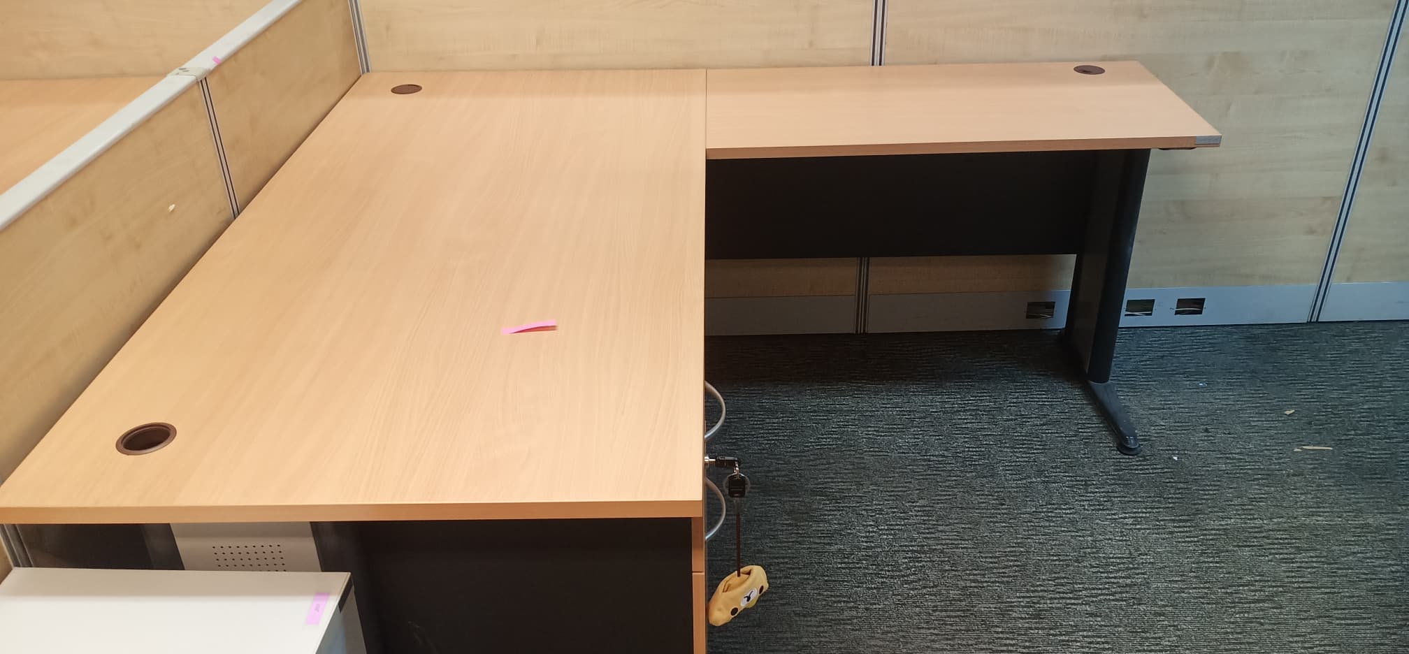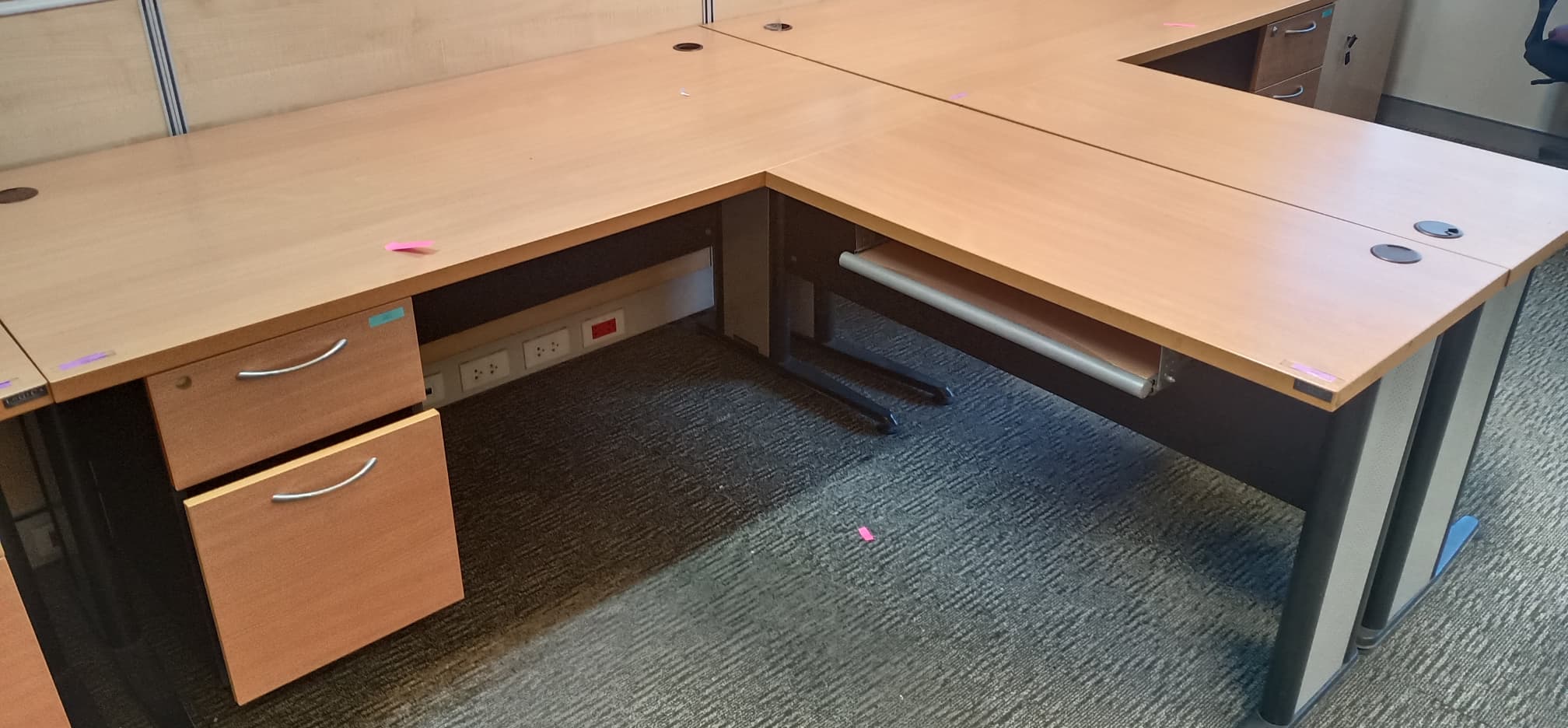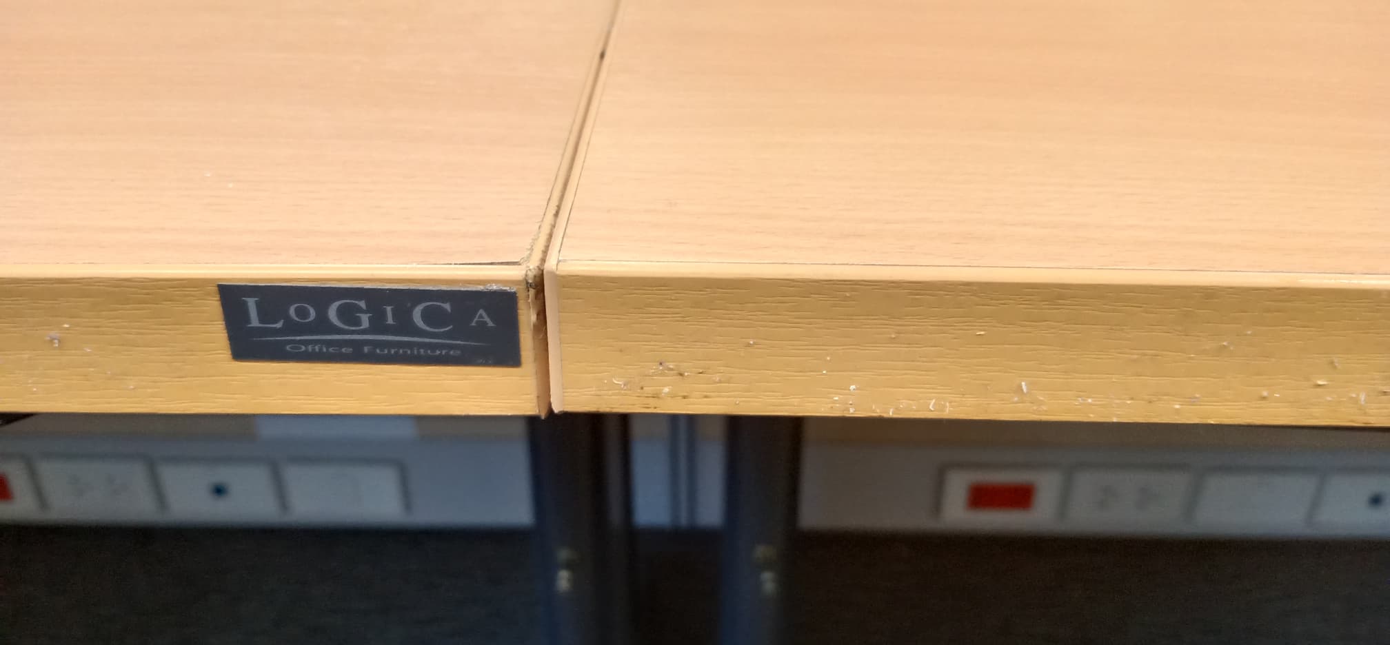 #โต๊ะทำงาน 2 ลิ้นชัก ขาเหล็ก #ยี่ห้อโลจิก้า ตัว L สีเชอรี่