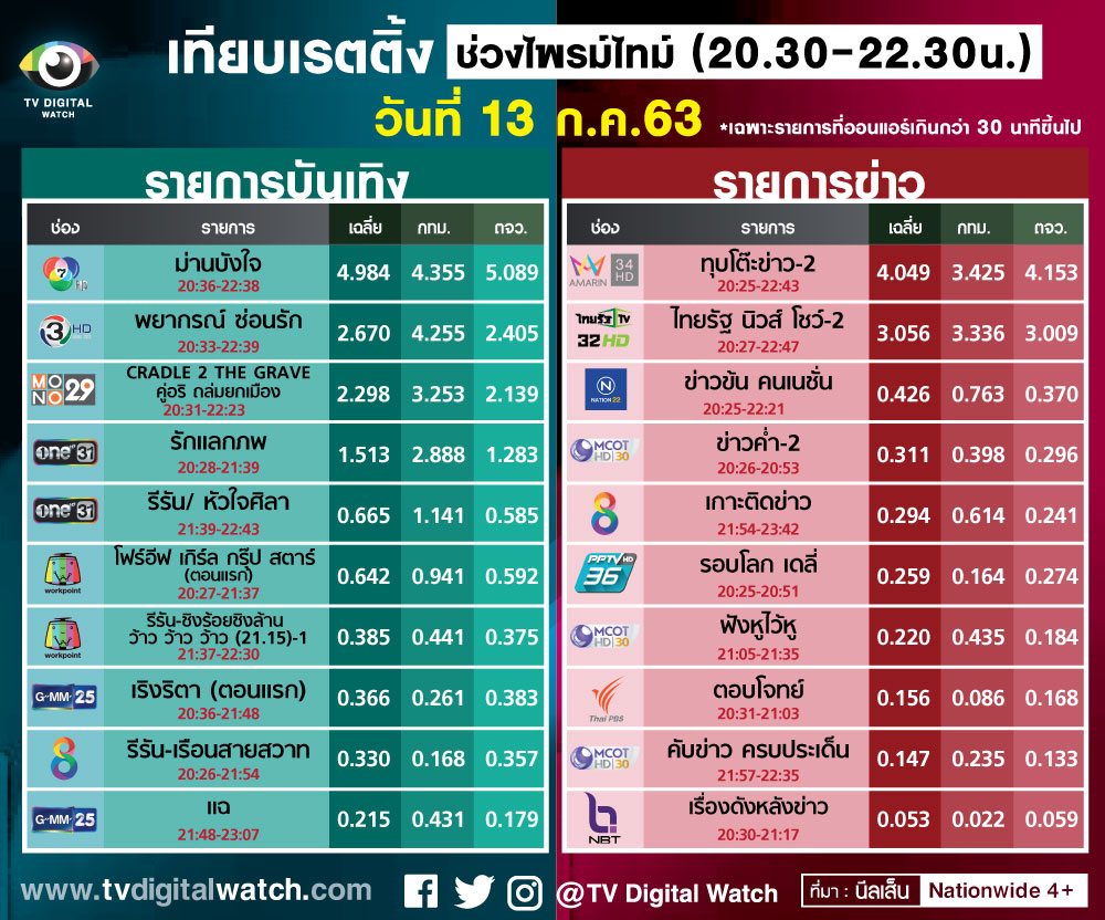 🧐🔎 เรตติ้งข่าว VS บันเทิง ช่วงไพรม์ไทม์ วันที่ผู้ชมหวาดวิตกโควิด-19 ระลอก 2