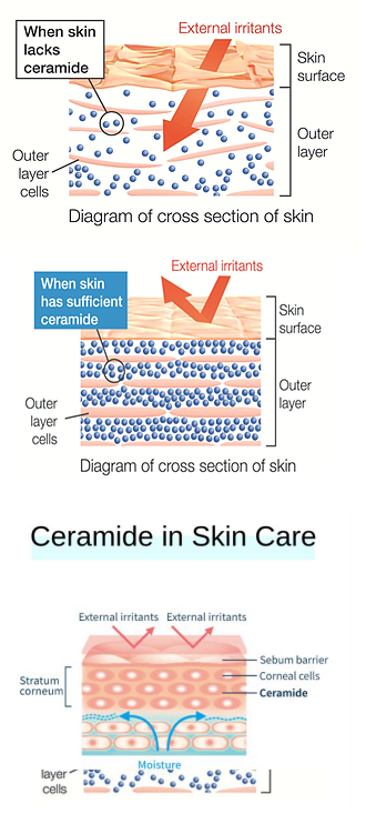 “เซอราไมด์ (ceramide)” เป็นสารธรรมชาติในผิวมนุษย์ พบว่าสภาพผิวชั้นบน (Stratum Corneum) จะมีเซราไมด์ประมาณ 40-65% ทำหน้าที่เสมือนปราการในการป้องกันอันตรายจากภายนอกร่างกาย โดยการผิวจัยทางผิวหนังพบว่าปัญหาผิว เช่น ผิวแดง ผิวแห้ง ผิวหยาบ และมีอาการคันสัมพันะ์ความบกพร่องของ ceramide และเกราะชั้นไขมันที่เคยปกป้องผิว และมีการสูญเสียน้ำผ่านทางผิวหนังมากขึ้น