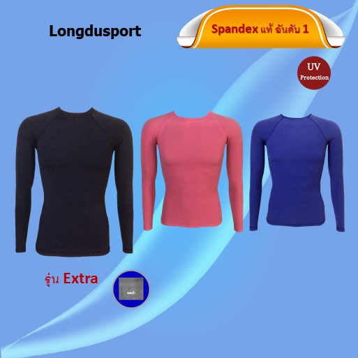 เสื้อรัดกล้ามเนื้อ รุ่น Extra สำหรับกิจกรรมฟิตเนส ผ้ายืด Nylon + Spandex แท้ คุณภาพอันดับ 1 แขนสั้น ราคาโปรตัวละ 320 บาท แขนยาวราคาโปรตัวละ 420 บาท ยืดหยุ่นสูง ผ้าแห้งไว ระบายเหงื่อได้ดี กลิ่นเหงื่อไม่ติดเสื้อช่วยลดอาการคัญสำหรับผู้แพ้เหงื่อ หลังซักไม่ต้องรีดผ้าไม่ยับไม่ย้วย เนื้อผ้าเย็น สวมใส่สบาย ป้องกันผิวไหม้แดงจากรังสีUV ค่าดัชนีกันแดด UPF 50 +
