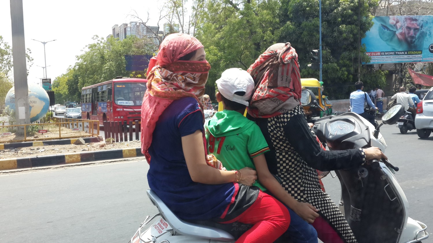 การซ้อน 3 ที่นี่ถือเป็นเรื่องปกติ หรือการไม่ใส่หมวกกันน็อคก้อยิ่งเป็นเรื่องปกติเข้าไปอีก ส่วนคุณผู้หญิงที่ขับขี่มอเตอร์ไซค์จะมีแฟชั่นการเอาผ้ามาพันหน้าพันตาพันแขนเก๋ ๆ แบบนี้เพื่อป้องกันแดดลม สีสันเต็มท้องถนน น่ารักดี