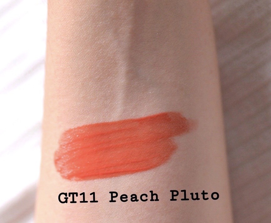 เป็นลิปที่พกพาง่ายและควรมีติดกระเป๋าค่ะ เพราะสีนี้เป็นสีที่สามารถทาได้ทุก Everyday look สีนี้คือ GT 11 Peach Pluto สีจะออกส้มๆพีช น่ารักมากๆ