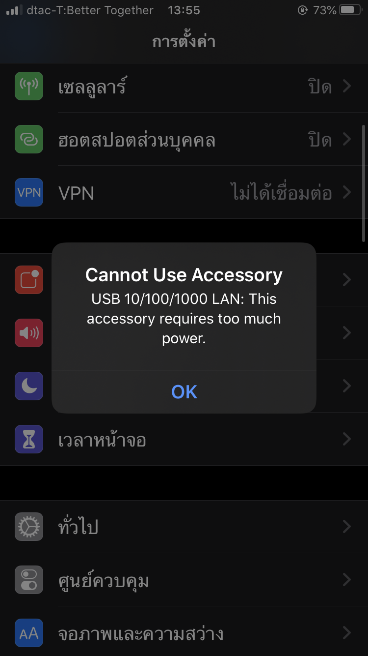 เห็นเค้าแข่ง ROV ใช้เลยลองซื้อมาใช้ดูบ้าง แต่ Lightning to USB Camera Adapter ใช้ของจีน ส่วน USB to LAN ซื้อของ UGREEN USB 2.0 มา ปรากฏว่ามันขึ้น Requires power too much (แต่ต่ออย่างอื่นได้ปกติ) เลย
