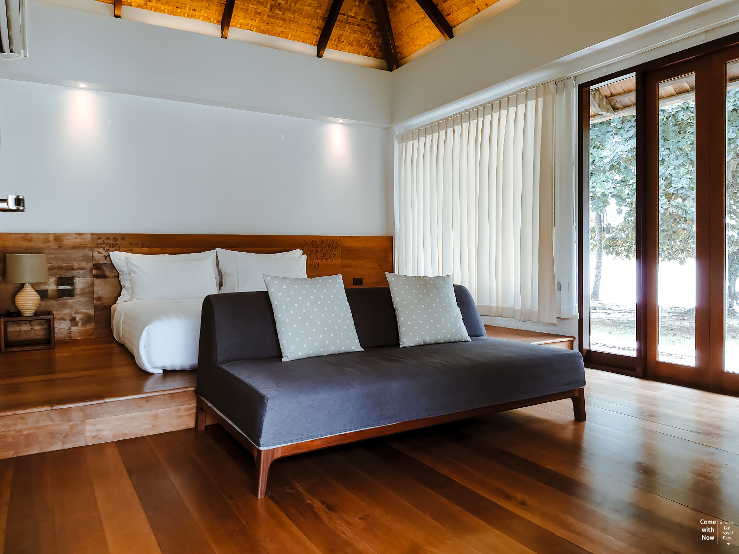 ห้องที่นาวพักเป็น Beachfront Deluxe Villa (1 Bedroom) ขนาด 50 ตร.ม. สามารถนอนมองเห็นวิวทะเลสวยๆได้จากห้องพักและเดินลงทะเลสบาย