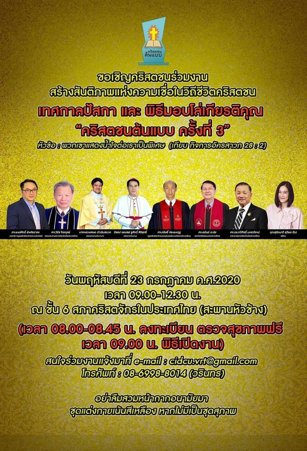 ขอเชิญร่วมงาน สร้างสันติภาพแห่งความเชื่อในวิถีคริสตชน เทศกาลปัสกา และ พิธีมอบโล่เกียรติคุณ “คริสตชนต้นแบบ ครั้งที่ 3”