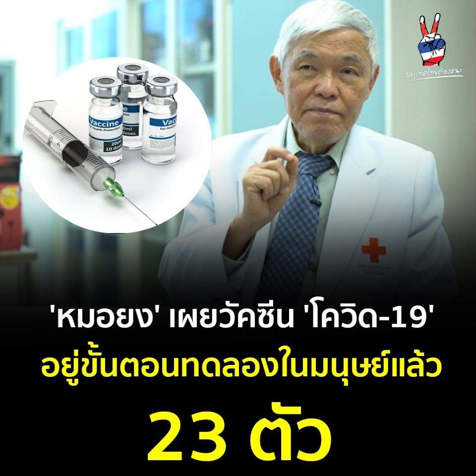16 ก.ค.63 - ศ.นพ.ยง ภู่วรวรรณ หัวหน้าศูนย์เชี่ยวชาญเฉพาะทางด้านไวรัสวิทยาคลินิก คณะแพทยศาสตร์ จุฬาลงกรณ์มหาวิทยาลัย ได้โพสต์เฟซบุ๊กว่า วัคซีนป้องกันโรค โควิด-19 ที่แจ้งมาอยู่ในบัญชีขององค์การอนามัยโลก กลางเดือนกรกฎาคมและอยู่ในการทดลองในมนุษย์แล้ว มีถึง 23 ตัว และอยู่ระหว่างการทดสอบระยะที่ 3 มี 2 ชนิด เป็นของจีน Sinovac และของ Oxford ร่วมกับ AstraZeneca และที่เหลือส่วนใหญ่จะเป็นการทดสอบระยะที่ 1 และระยะที่ 2 มีของจีน CanSino Biological/Beijing Biological Institue of Biotechnology และของอเมริกา Modera/NIAID ที่มีการเผยแพร่ในวารสารแล้ว และยังมีหลายชนิดที่ทดลองในคน