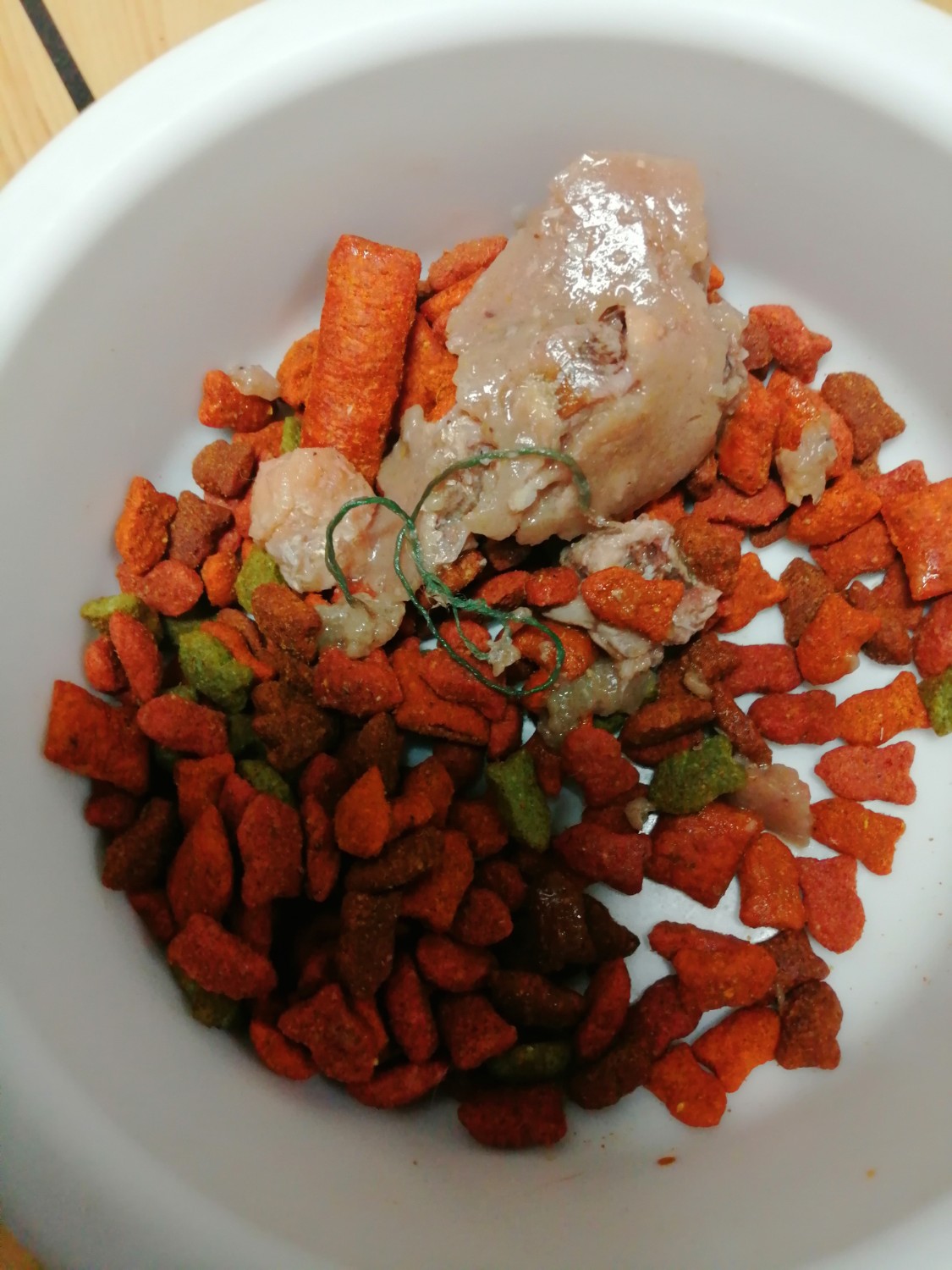 คือส่วนตัวชอบซัออาหารแมวเปียกมาคลุกกับอาหารเม็ดให้เจ้านายกินอยู่แล้ว คงเพราะเป็นคนขี้เกียจไม่ละเอียด555 เลยไม่ได้สนใจว่าในอาหารเปียกมีอะไรรึเปล่า แต่บังเอิ๊ญ~ ~