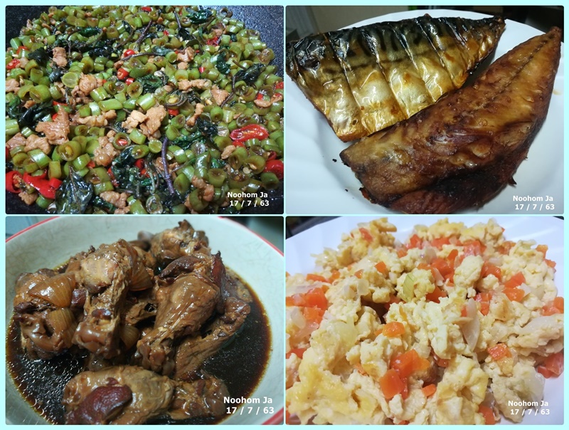 วันศุกร์ที่ 17 กรกฎาคม 2563 รายการอาหารเช้านี้ กะเพราถั่ว..ซาบะย่าง...ปีกไก่ตุ๋น..ไข่ทอด ทานอาหารตรงเวลารักษาสุขภาพ เชียงใหม่วันนี้ฟ้าแจ่มใส แต่จิตใจผู้คนหม่นๆ เป็นกลุ่มใหญ่ เศรษฐกิจที่ทรุดไม่หยุด มีแต่รายจ่ายที่ต้องออกไปแต่รายรับกลับเข้ามาน้อยมาก บางวันแทบจะหากันไม่ได้