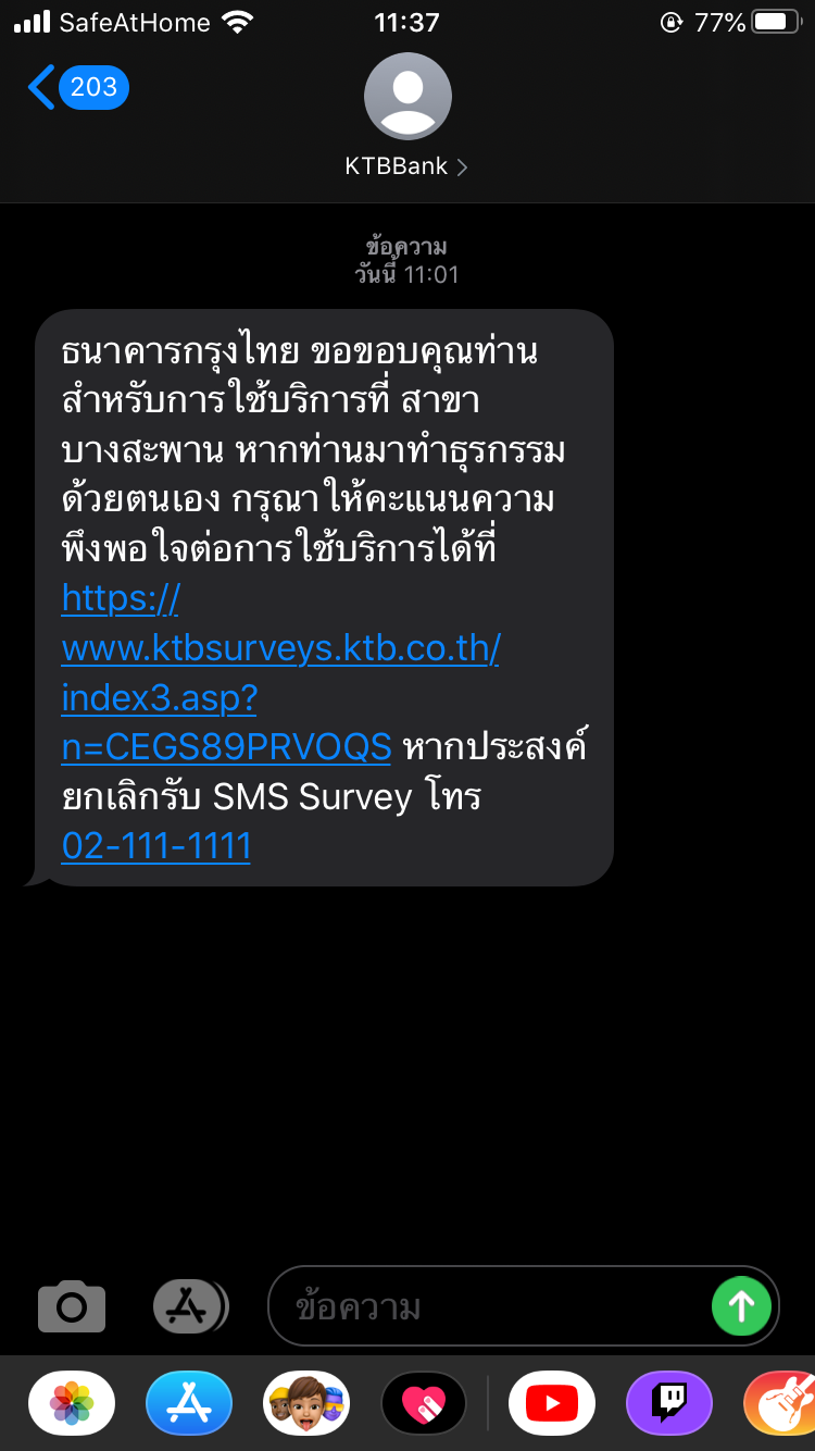 มีsmsของธนาคารกรุงไทยส่งมาทั้งที่ไม่ได้ทำอะไรเลย